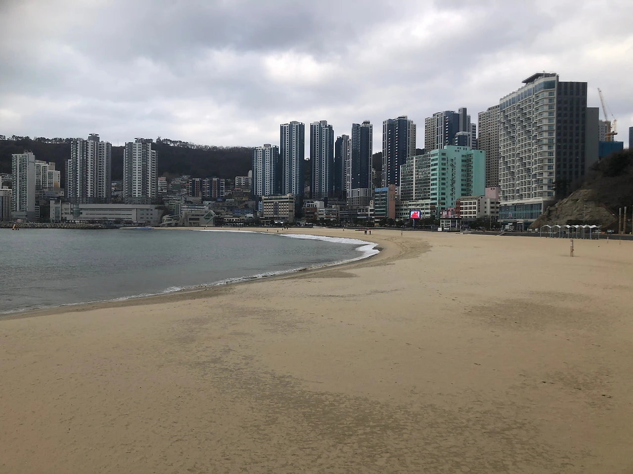 그 유명한 송도해수욕장. 우리나라 제1호 공설 해수욕장이라는데, 1913년 7월에 개장했으면 꽤 오래되긴 했다. 도심에 가까운 해수욕장들은 비수기에도 주변 시설과 백사장 관리를 잘하는 편이다. 깔끔하다. 한 가지 단점이라면 해수욕장 가까이에서 주변을 둘러싸고 있는 아파트와 빌딩들이 너무 위압적이다. (6.9km, 09:57).