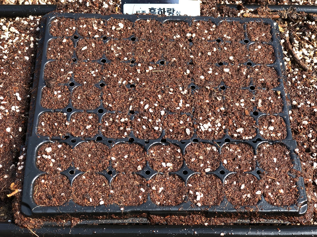 흑하랑은 겉봉에 50 립이라고 표시되어 있지만 실제로는 200 립 이상이 될 정도였다. 우선 모판에 50개 정도만 파종해 보았다. (3/9 토)