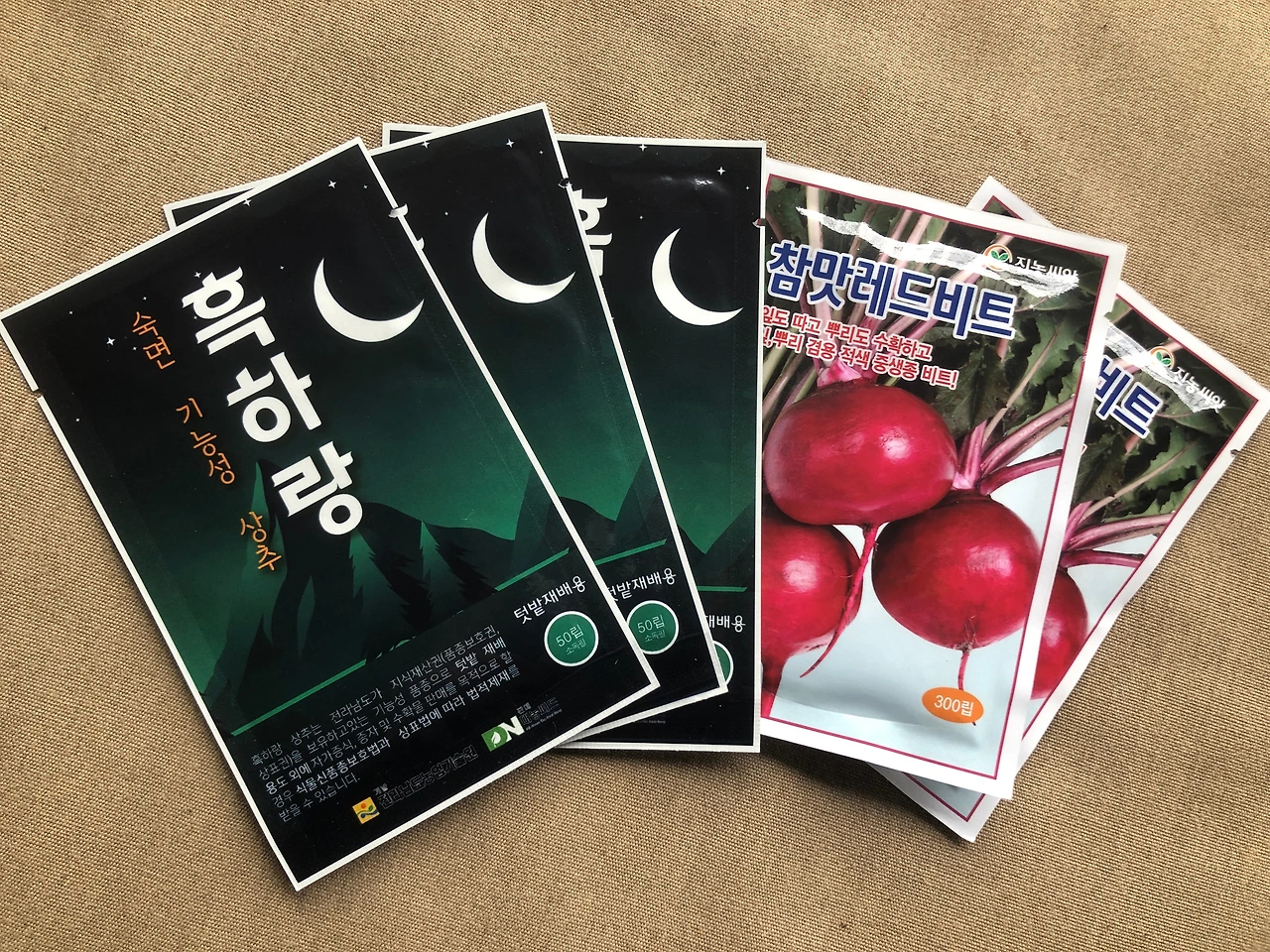 기능성 상추인 흑하랑을 재배해 보려고 지난주에 인터넷에 씨앗을 주문했던 것이 남파랑길 여행을 다녀온 사이에 택배로 도착해 있다. 작년에 꽃밭 한 켠에서 테스트 삼아서 재배해 보았던 레드비트는 올해에는 본격적으로 재배를 하기 위해 모종을 두 봉 샀다. 레드비트는 이파리도 샐러드로 먹고, 뿌리는 잘 자라면 피클을 담글 때 같이 넣으면 피클의 색이 분홍빛이 나서 먹음직스러워진다.