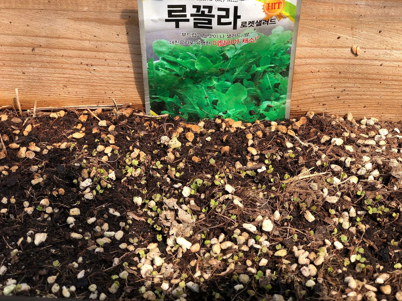 루꼴라는 5일 만에 새싹이 바글바글 올라오고 있다.