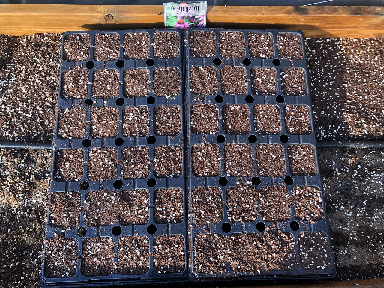 오늘 에키네시아를 모종판에 다시 파종했다. 씨앗의 크기가 미세하지는 않아서 포트당 3개 안팎으로 챙겨 넣는 데에는 크게 어려움이 없다. 암발아로 14일 정도 걸린다길래 상토 봉투로 잘 덮어 두었다. 대략 3월 말까지는 발아를 해야 문제가 없는데, 잘 될는지 모르겠네. (3/14 목)