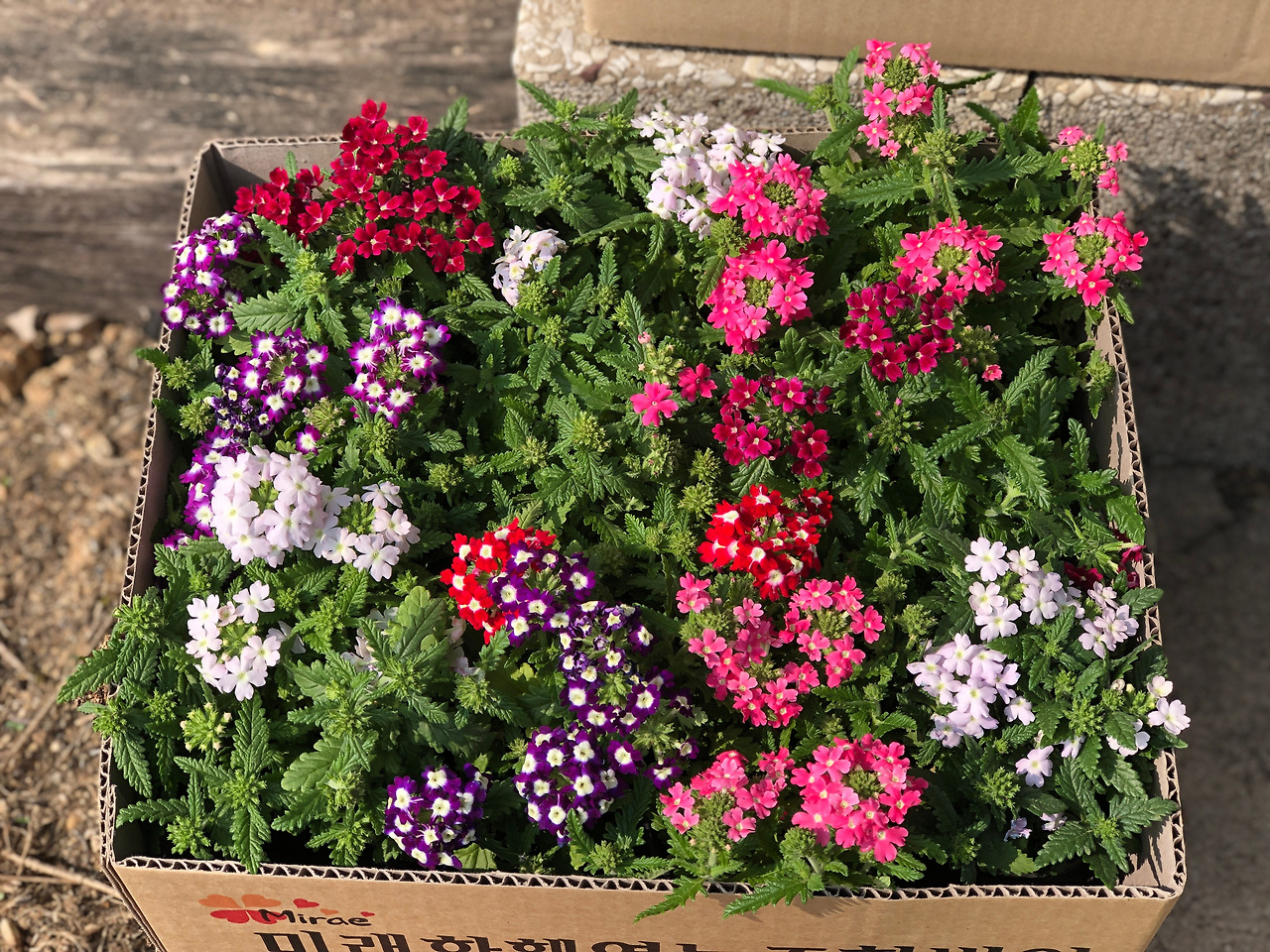 당근에 또 관심 있는 화초들이 떴다. 에키네시아에 이어 올해 심어보려고 작정했던 버베나가 올라왔길래 위치를 물어 사러 갔다. 자주 다니던 길목에 있지만 잘 보이지 않던 작은 농원이다. 버베나 11개가 남았다고 해서 몽땅 사 가지고 왔다. 버베나는 지금보다 훨씬 크게 성장을 하고, 월동을 하는 다년생인 데다가 봄부터 가을까지 꽃이 핀다고 해서 관심을 가지고 있던 품종이다. (3/16 아띠정원)
