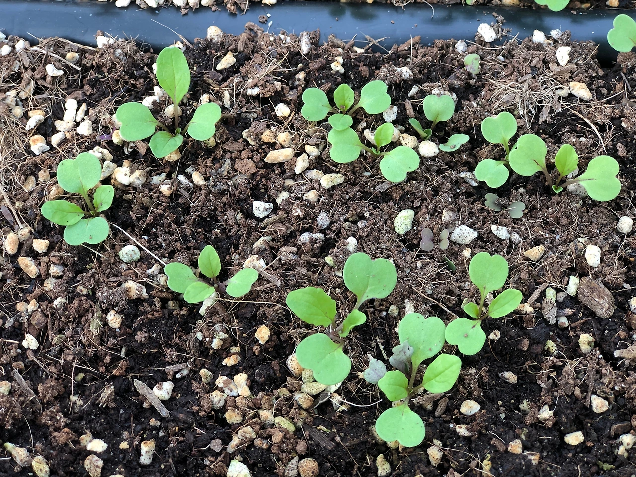 어수리, 눈개승마와 함께 파종한 루꼴라는 이제 본잎이 나오기 시작한다. 너무 빽빽해서 틈날 때마다 작은 것들을 솎아내기 시작했다. 듬성듬성하게 키우다가 더 커지면 다시 솎아줘야 될 것 같은데, 지금 이 정도로 빽빽하면 성장도 제대로 못 할 것 같고, 성장을 적당히 한다 해도 어느 정도 커지면 솎아내기도 힘들어진다. 그래서 지금은 다시 솎아낼 수 있을 정도로 간격을 두고 나머지는 과감하게 버리기로 한다. 처음 맡아보는 루꼴라의 향이 색다르다. 그전에 경험해보지 못했던 향이다.