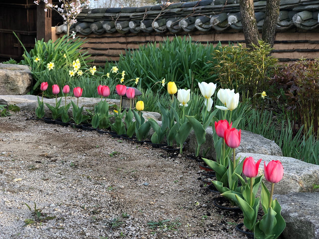 화사한 꽃을 피웠다. 바람이 세차서 하얀 튤립은 잎이 손상되었다. 튤립이 피어나니 마당이 화사해진다. 마당의 화단에 2년 전에 심은 튤립이 있었는데 그냥 방치를 해두었더니 숫자는 몇 개 늘어난 것 같은데, 크기가 너무 작아졌다. 아마도 꽃이 지고 난 후의 구근 관리를 제대로 하지 않아서 구근이 커지지를 않아서 그런 모양이다. 올해는 튤립의 꽃이 지고 나면 구근을 키우는 방법을 제대로 시도해 봐야 될 것 같다.