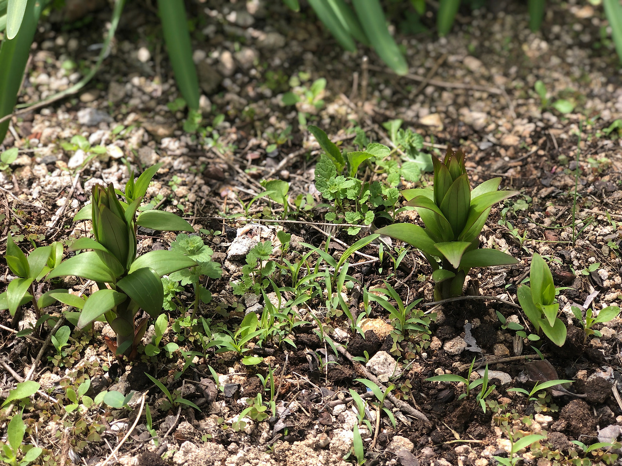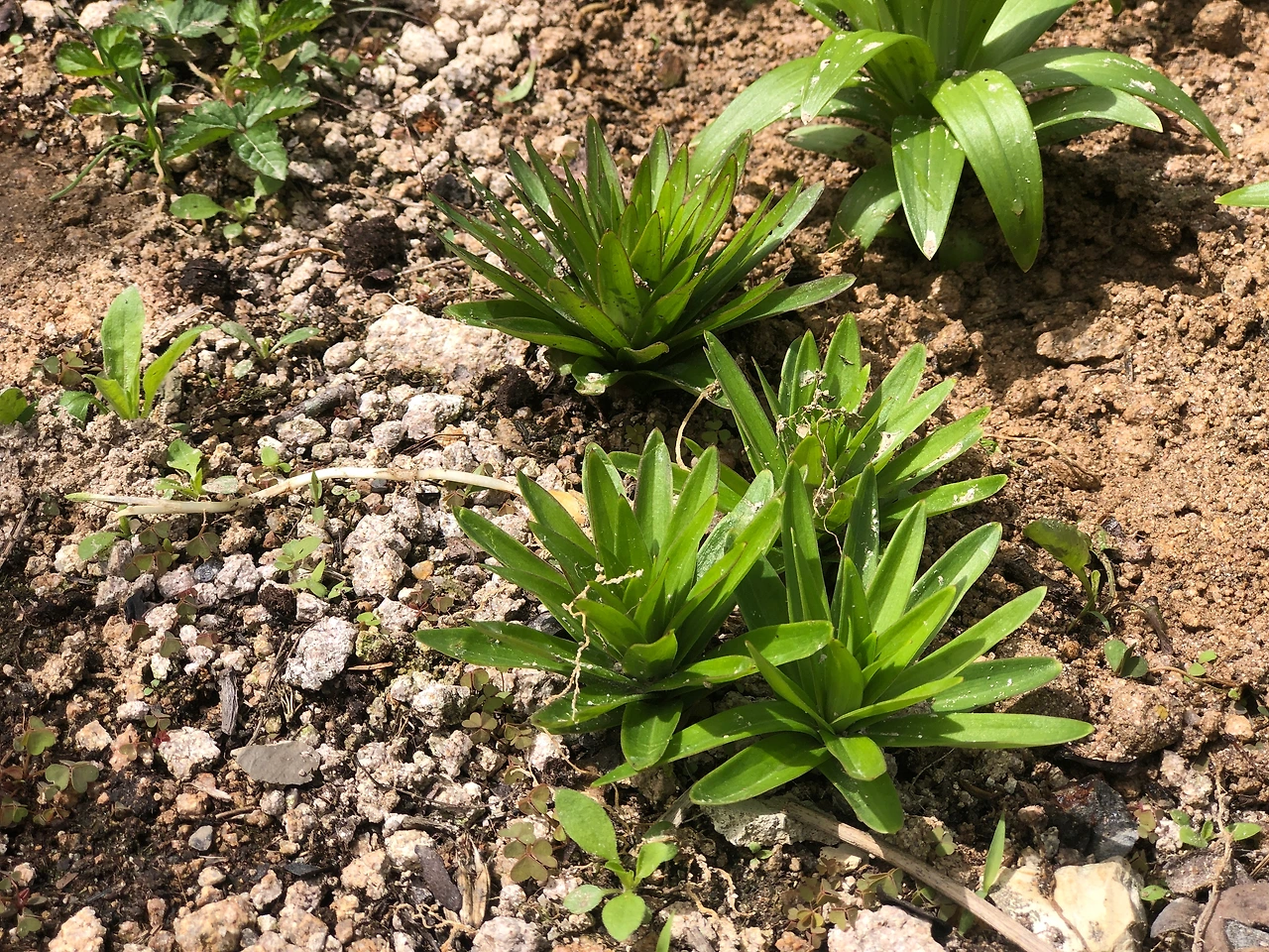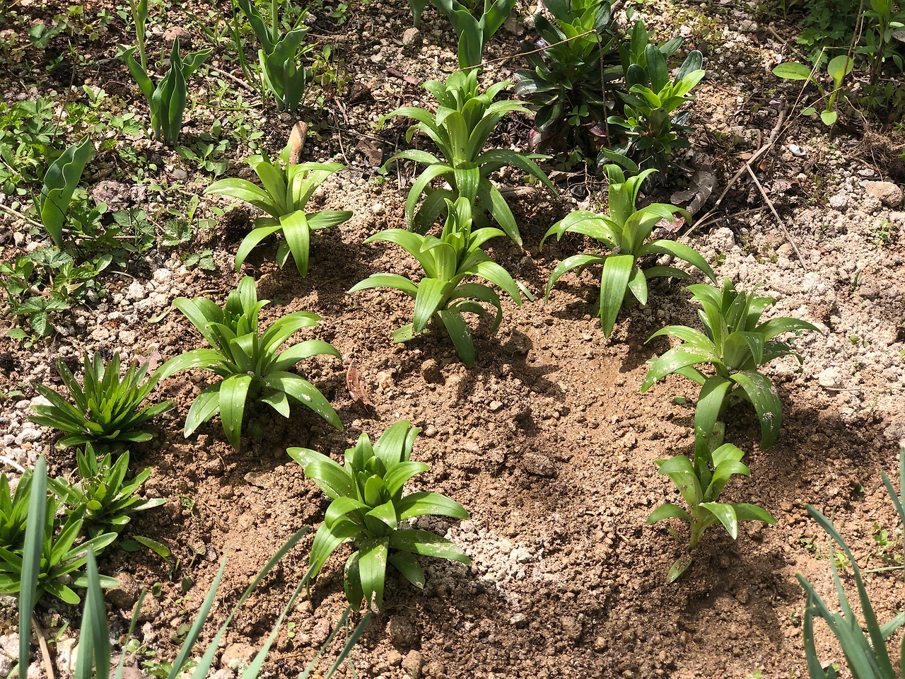 백합이 번식을 했다. 너무 빽빽해서 분산해서 다시 심었다. (4/15 월)