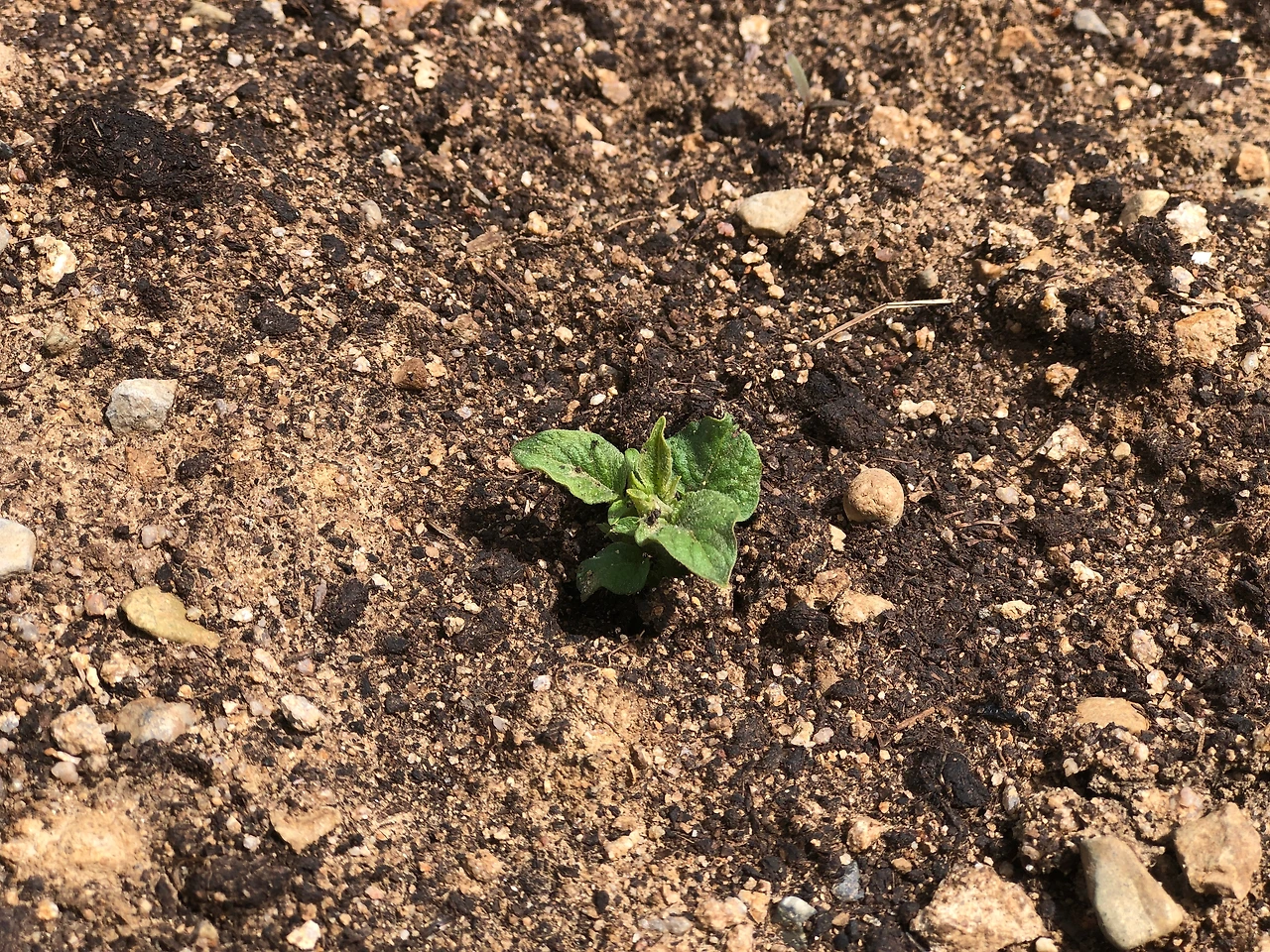 4월 3일에 심은 두백감자의 싹이 2주 만에 올라오기 시작했다. 아직은 세 개 정도밖에 안 보이지만 이제 시작이 되는 모양이다. (4/17수)