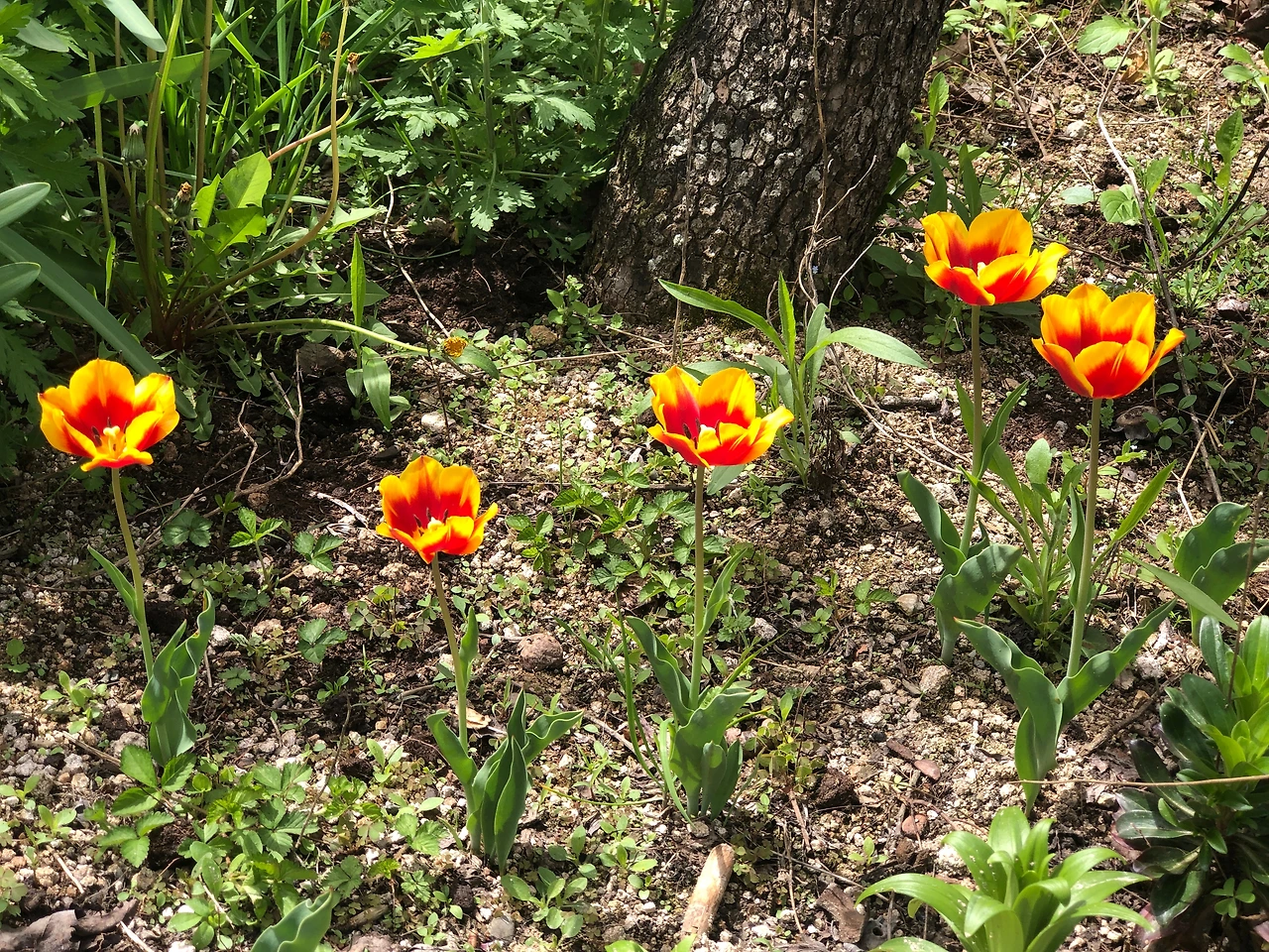 2년 전에 심은 튤립들은 구근 관리를 제대로 안 해서 작게 피어났다. 그래도 예쁘다. (4/17 수)