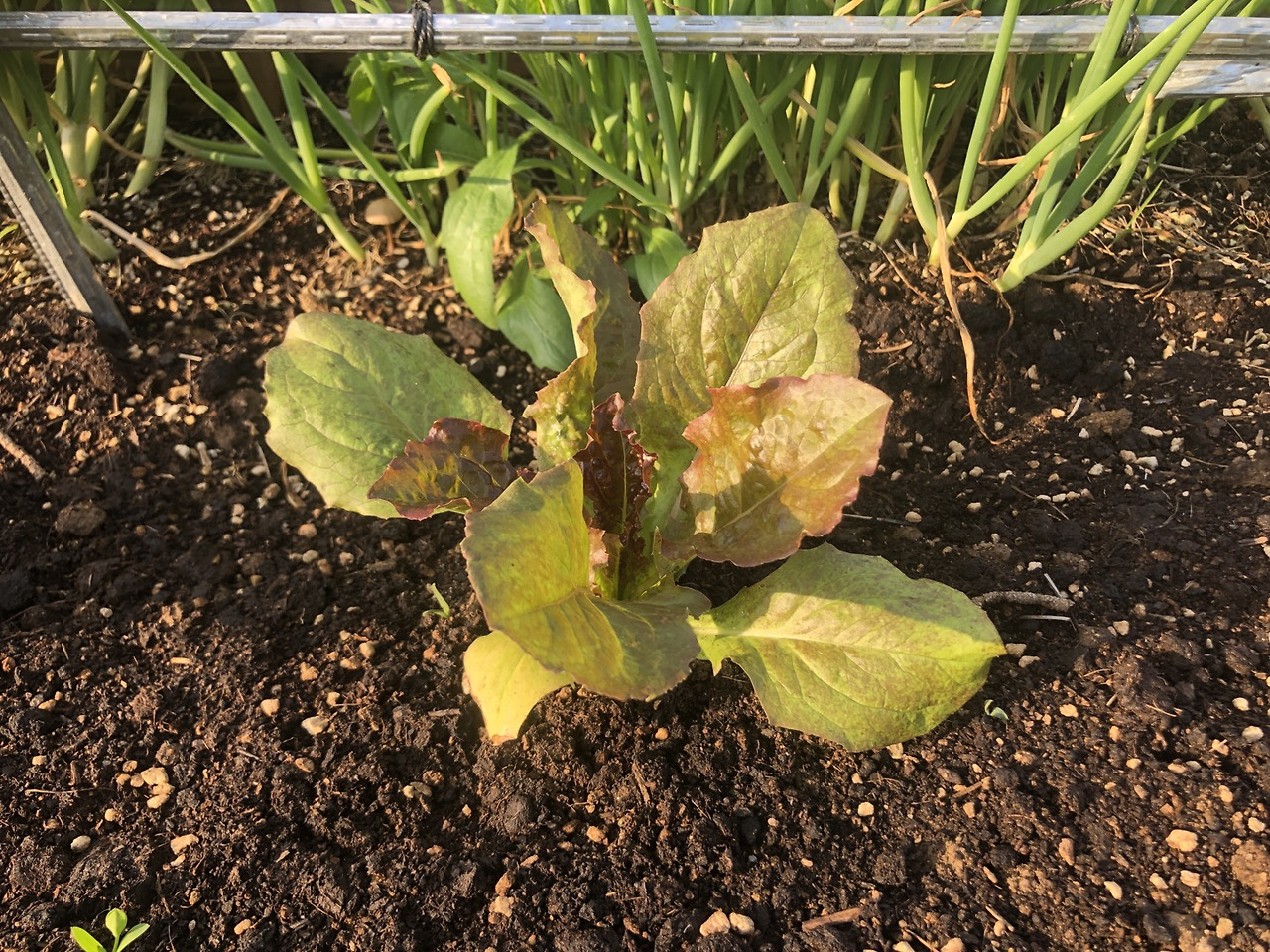 유럽상추 모종은 겨울을 나서 나무로 자라고 있는 적치마상추와 그 사이에 심은 꽃상추의 틈을 비집고 심었다. 적치마상추가 끝이 날 무렵이면 유럽상추가 자라 올라올 것이라고 기대하면서. 아래의 청색이 유럽상추인데, 아직은 별로 특별해 보이지 않는데, 모종값이 꽤 비싸다. 한 포트에 5백 원이라니... (4/19 금)
