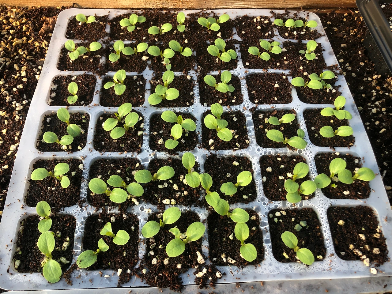 씨를 뿌린 그대로 싹이 올라온 것 같다. 발아율이 너무 좋아 나중에 선택 장애를 보이기 전에 과감하게 한 포트에 한 두 개의 싹만 남겨두고 뽑아 버렸다. 핀셋을 하나 챙겨 놓아야 되나 싶을 정도로 작은 싹들이어서 크게 아쉬움은 없다.(4/20 토)
