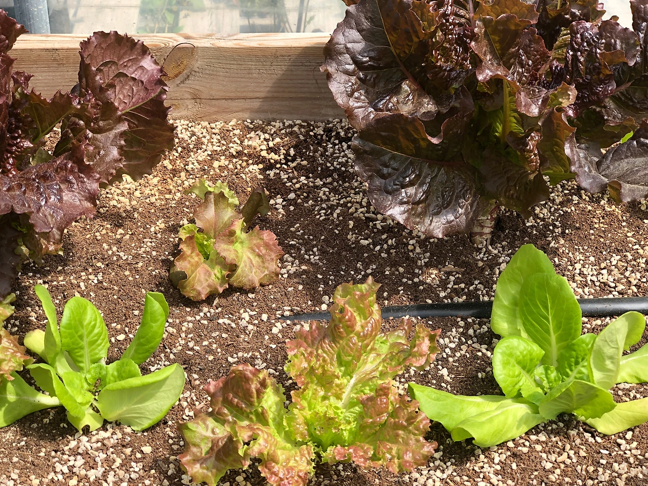 상추는 이제 수확할 수 있는 것이 청치마, 적치마, 꽃상추, 흑하랑까지 모두 네 가지가 되었다.