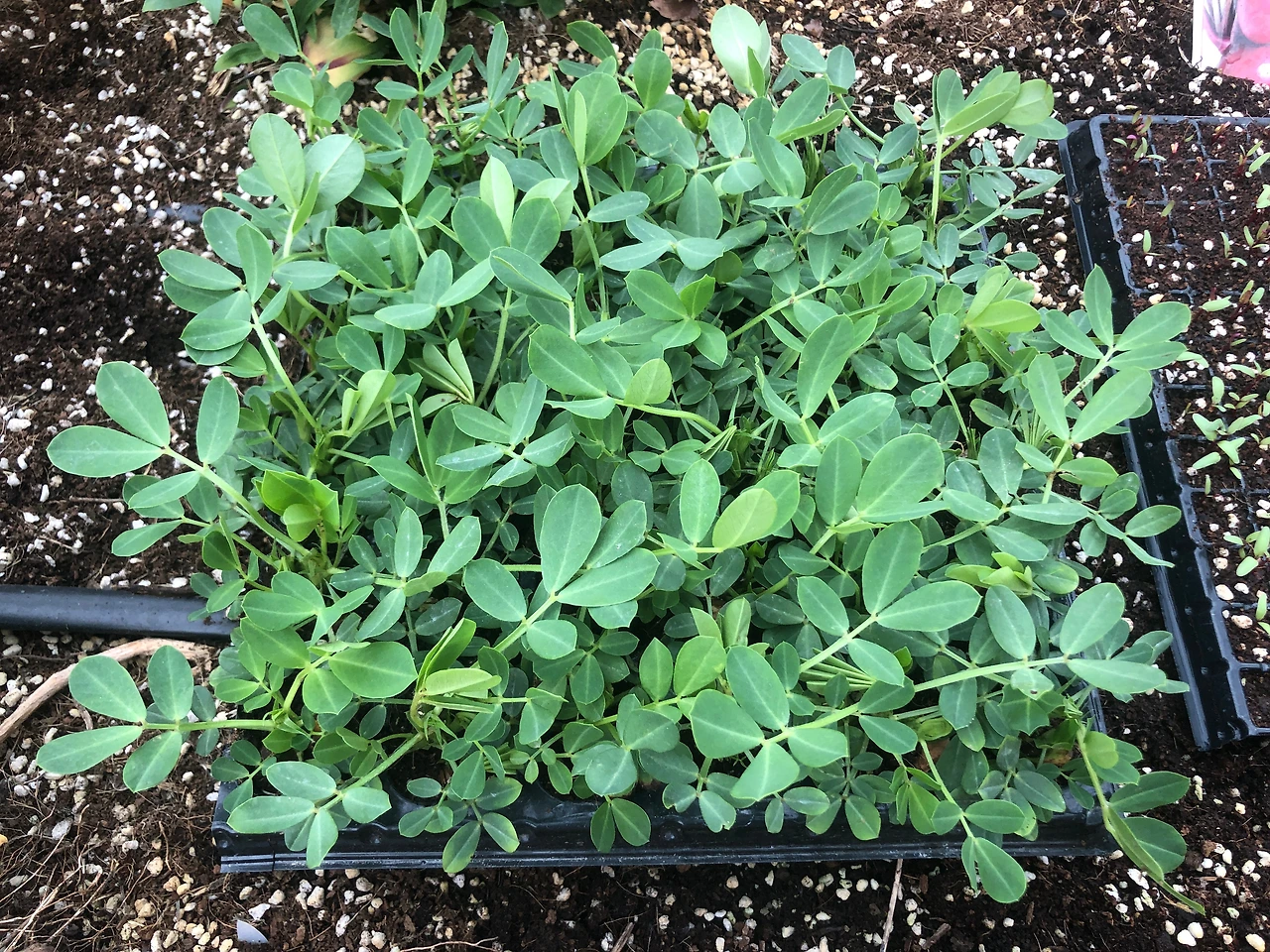 작년에 땅콩을 씨앗으로 직파했더니 새들이 다 파먹어 버렸다. 모종으로 조금 심어서 수확을 했는데, 생각보다는 수확량이 적어서 실망했지만 땅콩은 그래도 매력이 있는 수확물이다. 올해는 모종판에 심어서 싹을 틔워서 심어 보겠다고 생각만 하다가 시기를 놓쳐 버렸다. 할 수 없이 모종을 샀다. 올해는 제대로 수확을 해보길 바라면서 또 땅콩을 심었다. 모종 36개로 1평짜리 틀밭이 가득 찼다.(4/24 수)