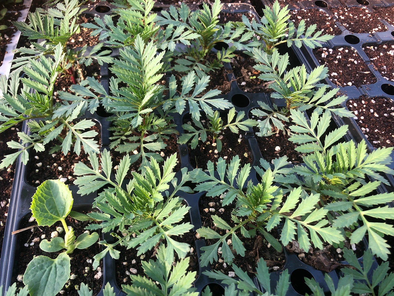 매리골드 싹이 제법 커져서 모종판에 옮겨 심었다. 나눔을 위해서 (4/20 토)