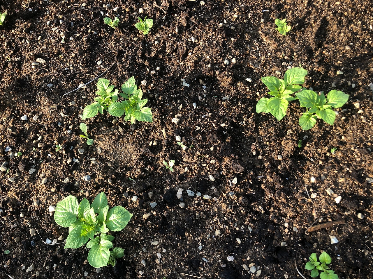 감자들은 싹이 제법 많이 났다. 대략 헤어보니 5~6개 정도만 아직 싹이 안 보이고 나머지는 크든 작든 모두 싹이 올라왔다. (4/24 수)