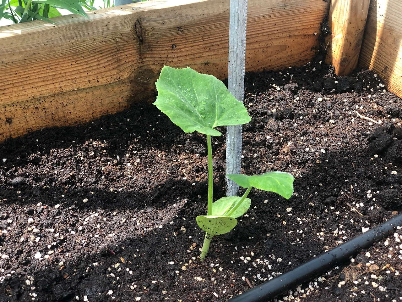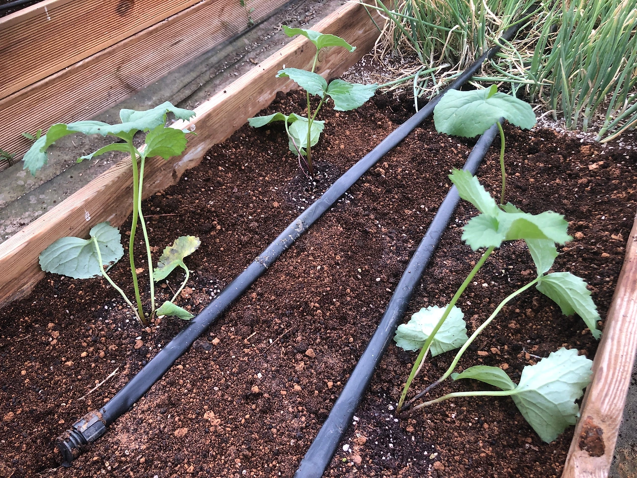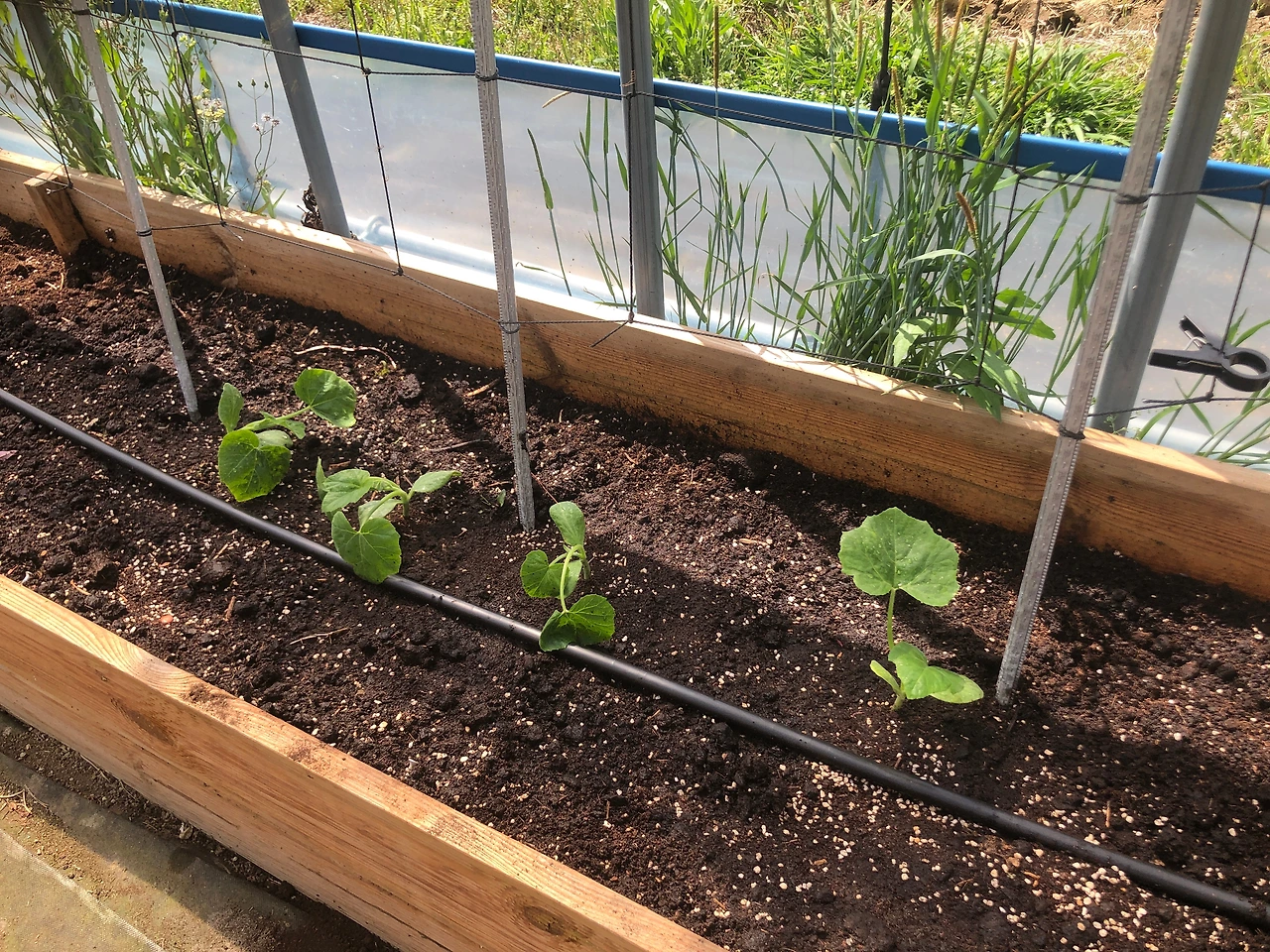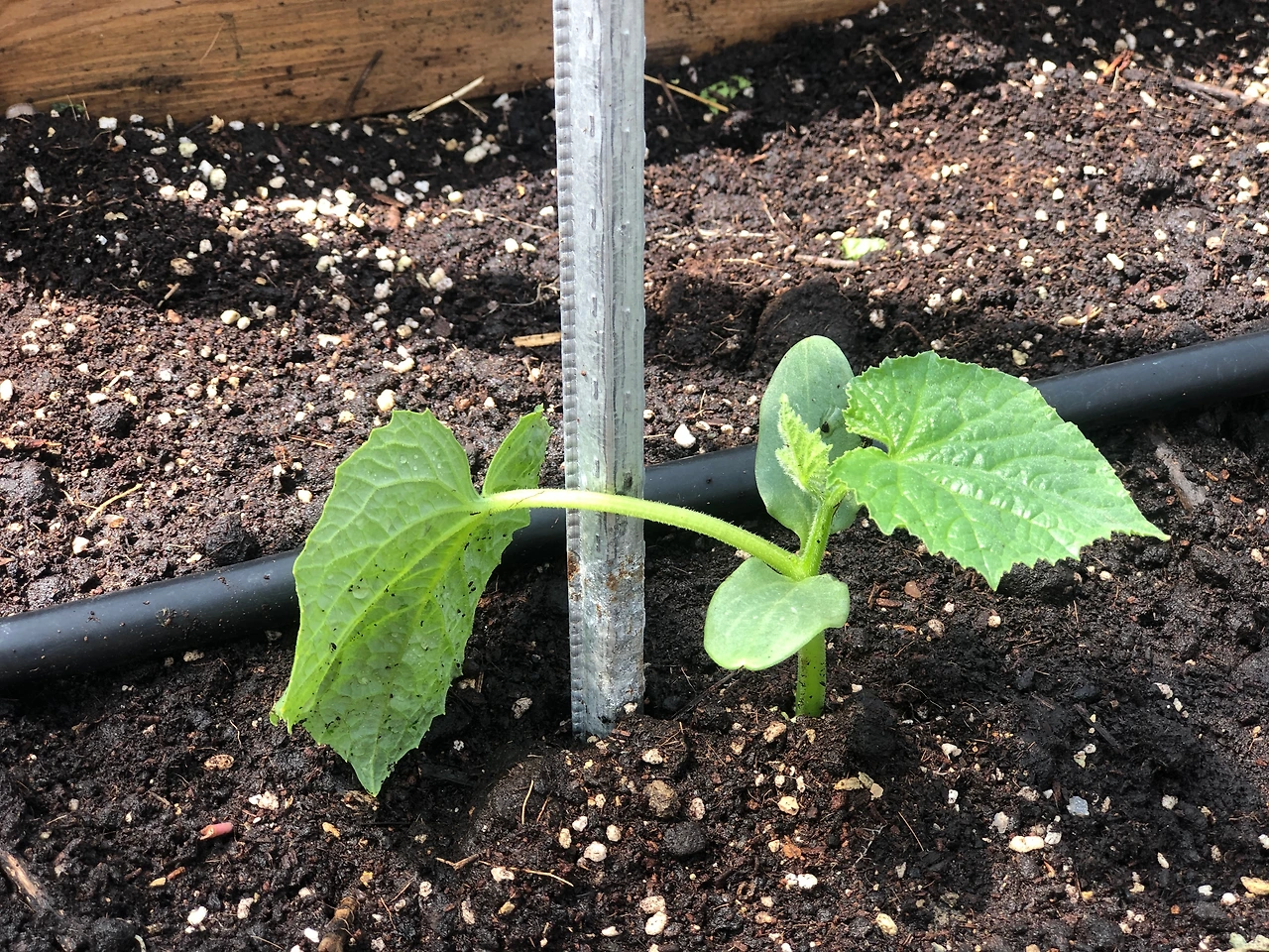 새로 산 모종, 가시오이 10주와 애호박 4주를 심었다. (4/18 목)