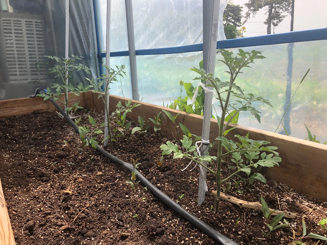 비닐하우스 안의 틀밭과 바깥의 틀밭에 심은 흑하랑 모종은 어쩐 일인지 바깥의 틀밭이 더 잘 자란다. 비닐하우스의 틀밭에 무슨 문제가 있는지 제대로 자라지 않고 시들시들한 모습이다. 물이 모자란 것도 아니고 양분이 부족한 것도 아니고, 숙성이 제대로 되지 않은 거름을 넣은 것도 아닌데 다른 원인을 알 수가 없다.