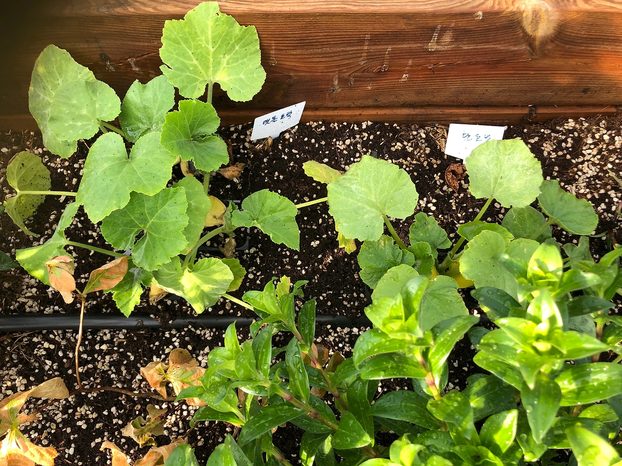 호박, 오이, 참외, 수박은 각각 모종의 상태에서도 이파리 모양만으로도 구분이 어느 정도 가능한데, 세부적인 구분은 어려운 편이다. 예를 들면 올해는 맷돌호박, 단호박, 애호박 이렇게 3 가지를 키울 생각인데 이게 구분이 어렵다, 그리고 오이도 가시오이, 조선오이 두 가지인데 이것도 역시 구분이 어렵다.