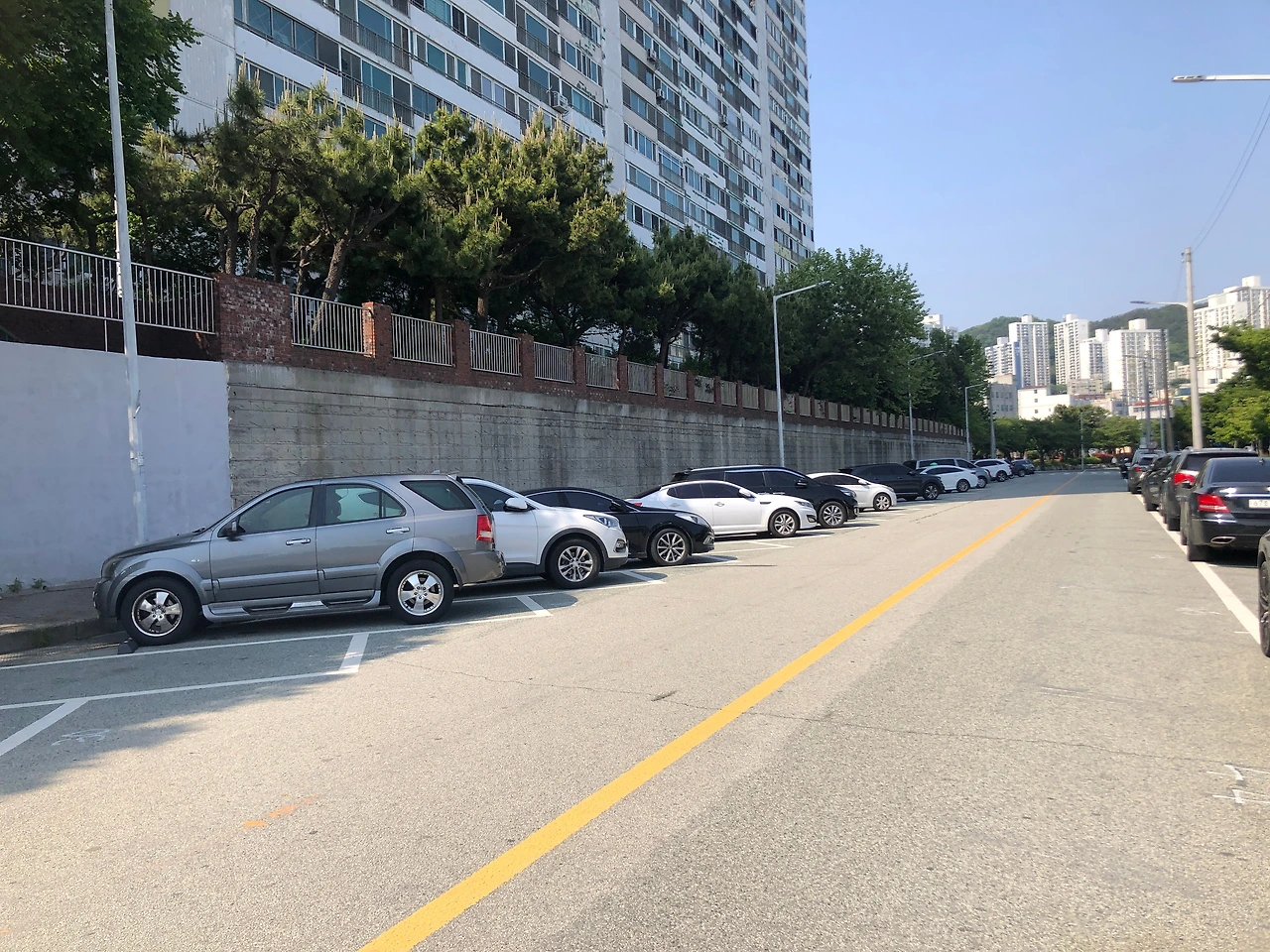 종점인 신평동 교차로 부근의 '하단유수지주민어울마당' 옆 골목길 안 공영주차장을 이용했다. 하루 종일 주차할 수 있는 일 주차가 2,400원인데, 친환경차 감면으로 1,200원을 안내판에 명시된 대로 지정된 함에 무인 납부했다. 이 부근의 골목길은 좁고, 거의 거주자 전용 주차 공간으로 되어 있다.
