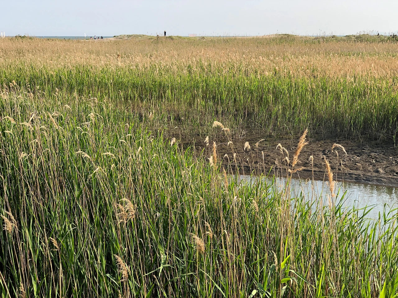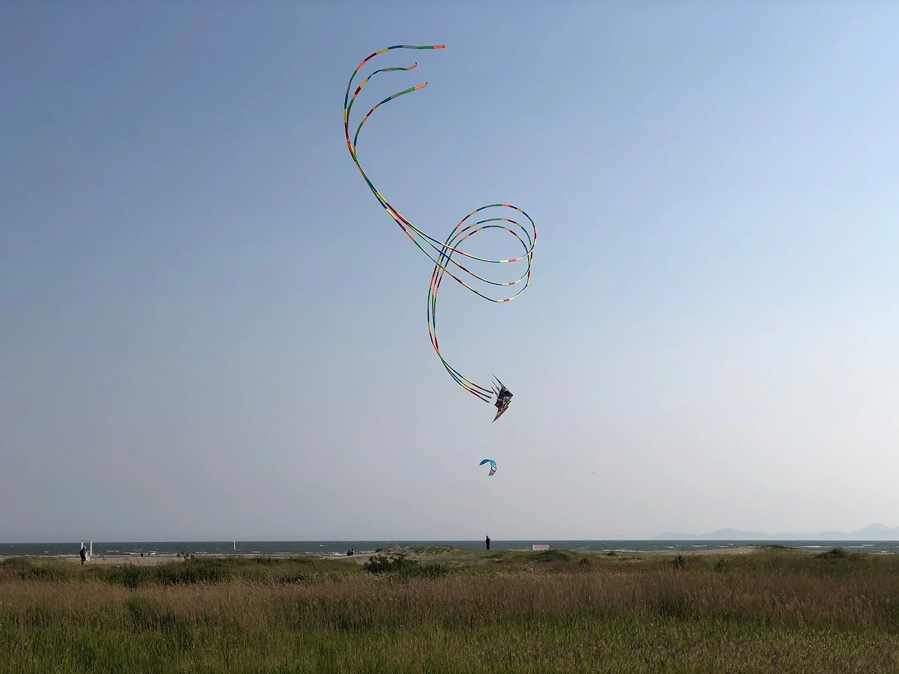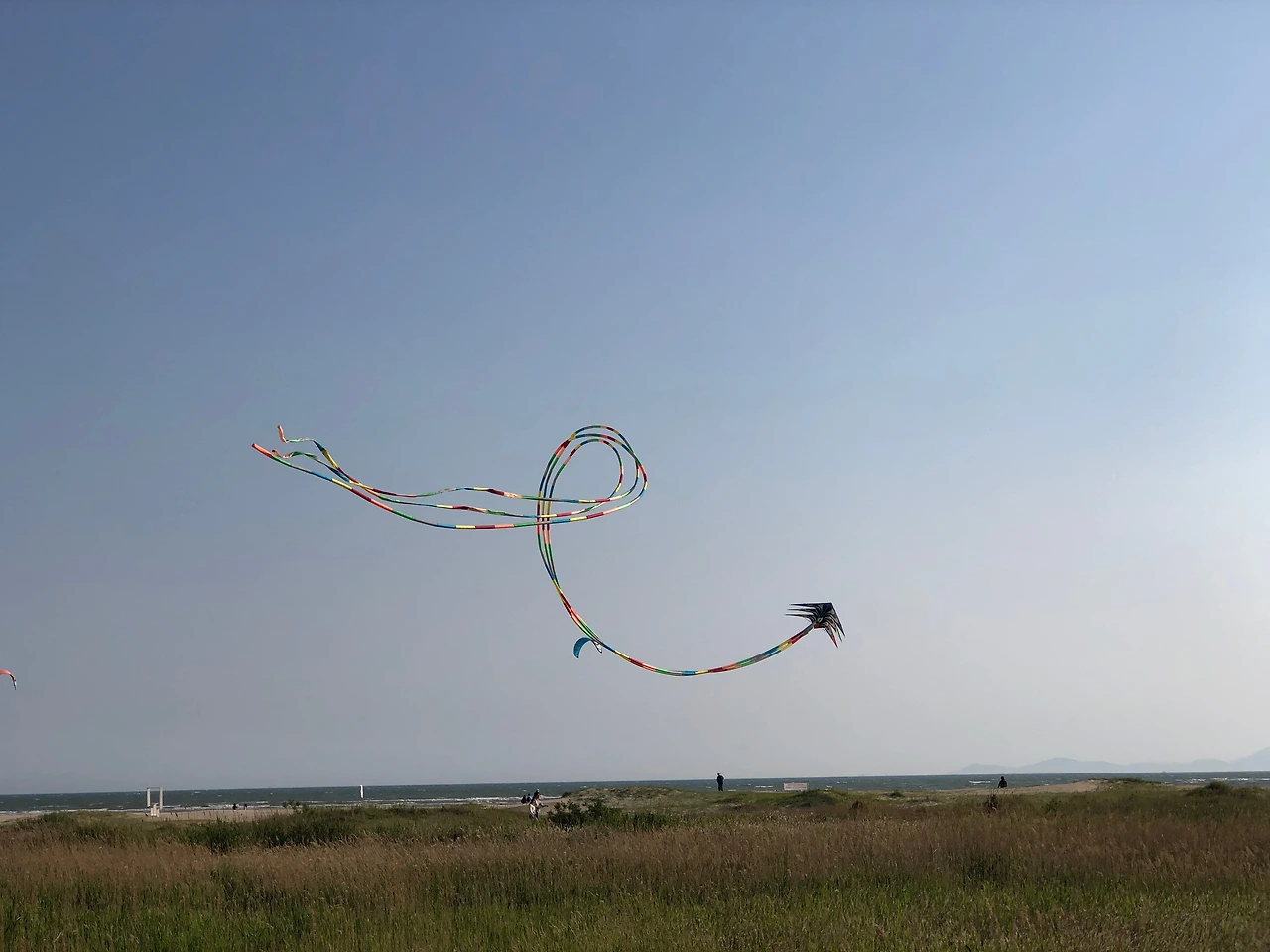 해솔길의 전반부에서 이 세 나무를 보면서 지나오다 보면 갈대밭을 만나게 된다. 마치 순천만의 갈대밭에 온 것처럼 무성하게 자라는 갈대밭이 보기 좋은 구간이다. 여기서도 어딘가에서 해당화의 향기가 풍겨온다. 갈대밭 저 너머에서 드론으로 조정하는 듯한 연이 하늘을 나는 모습을 보면서 가다 보니 길이 즐겁게 느껴진다.