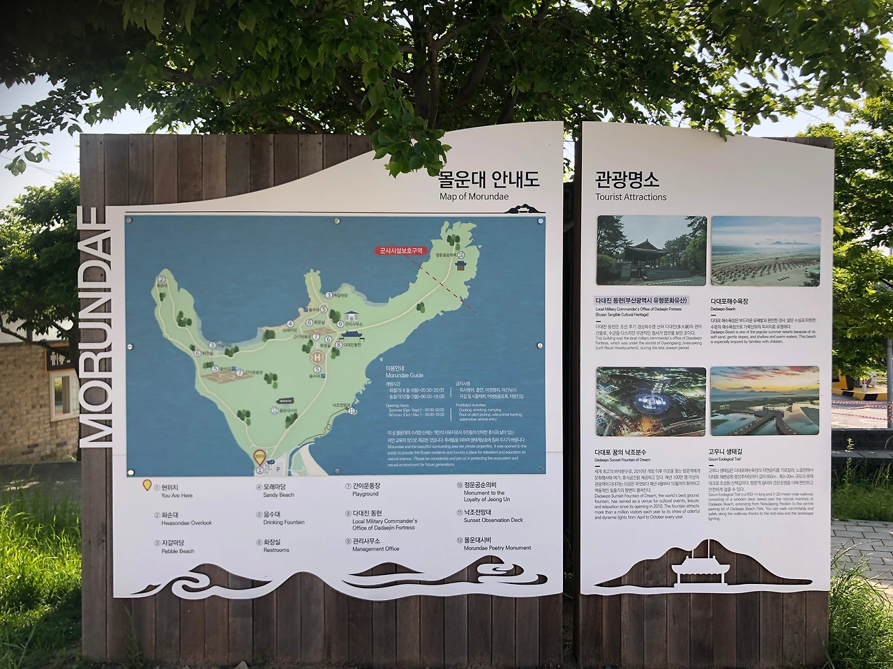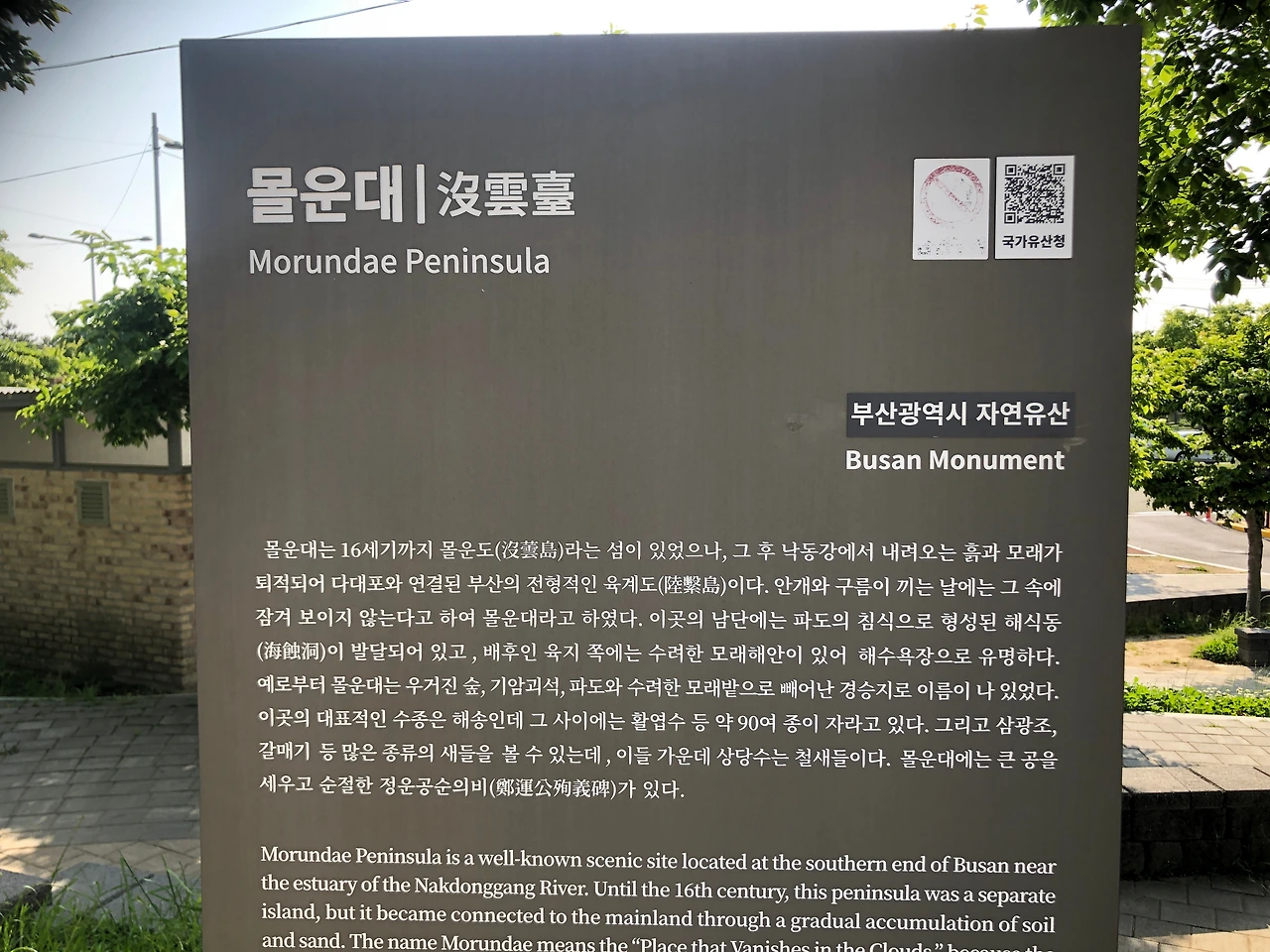 몰운대 끝단에는 좌우로 바다를 조망할 수 있는 위치를 전망대로 표시되어 있지만 남단을 보려면 좀 더 나가서 옛 군부대 진지의 흔적이 있는 곳까지 가면 탁 트인 남쪽을 조망할 수 있다. (16:30, 11.3km)