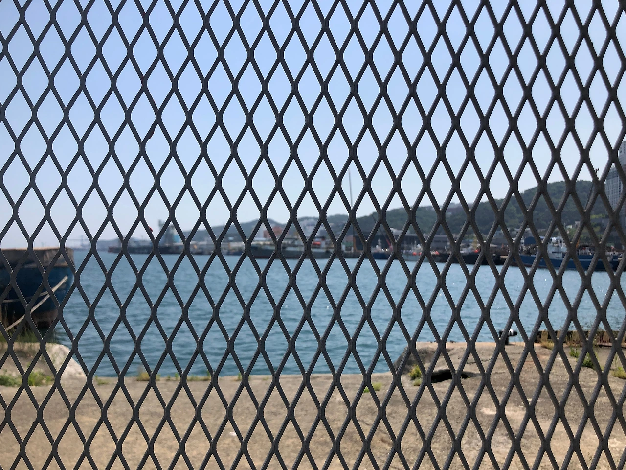 5 부두 앞에서 도로는 좌측으로 이어지고 여기는 높은 철제패널로 담장이 쳐져 있다. 바다 방향이 보이지 않아서 차소리만 들으면서 잠시 길을 이어가야 된다.