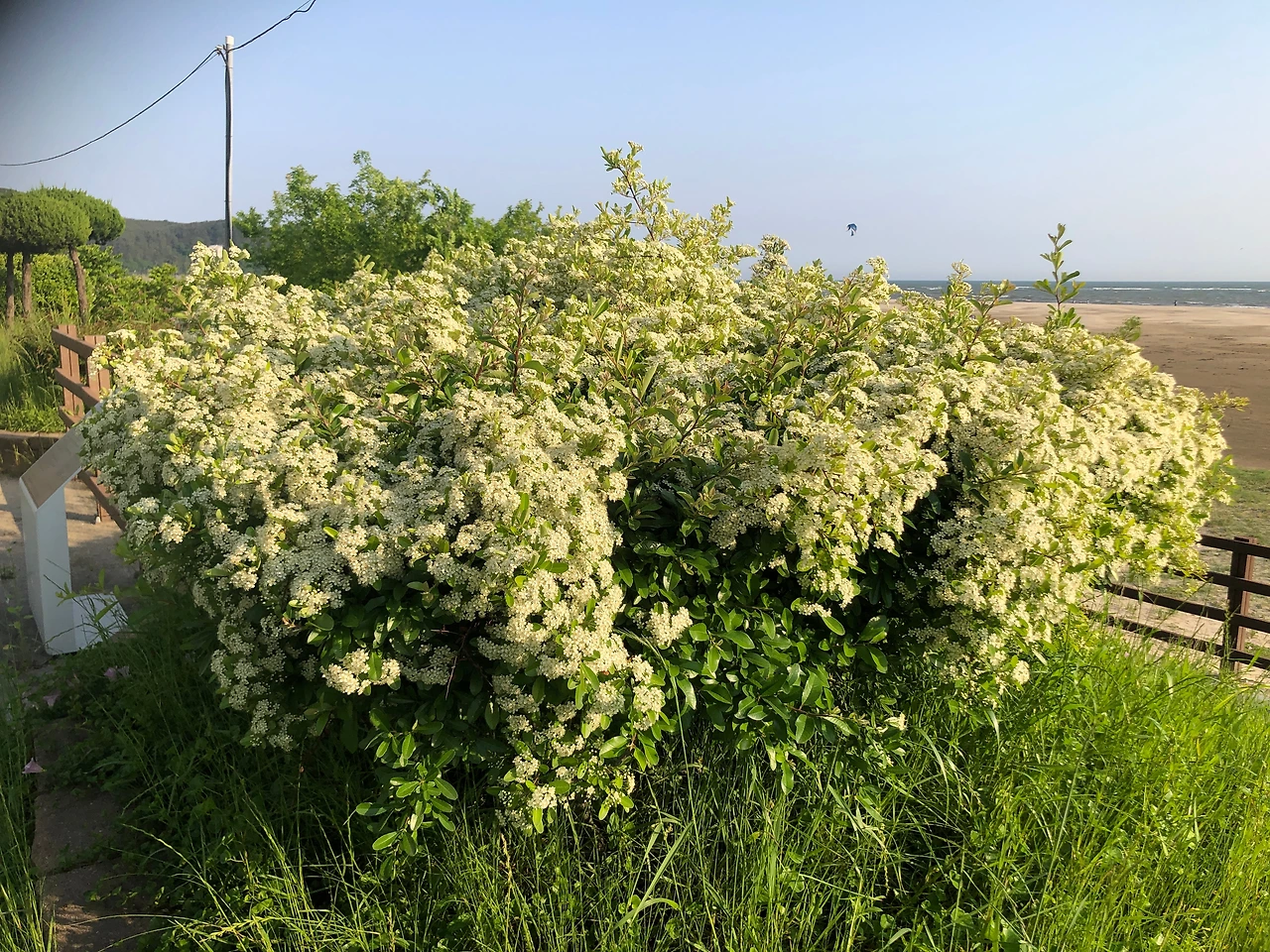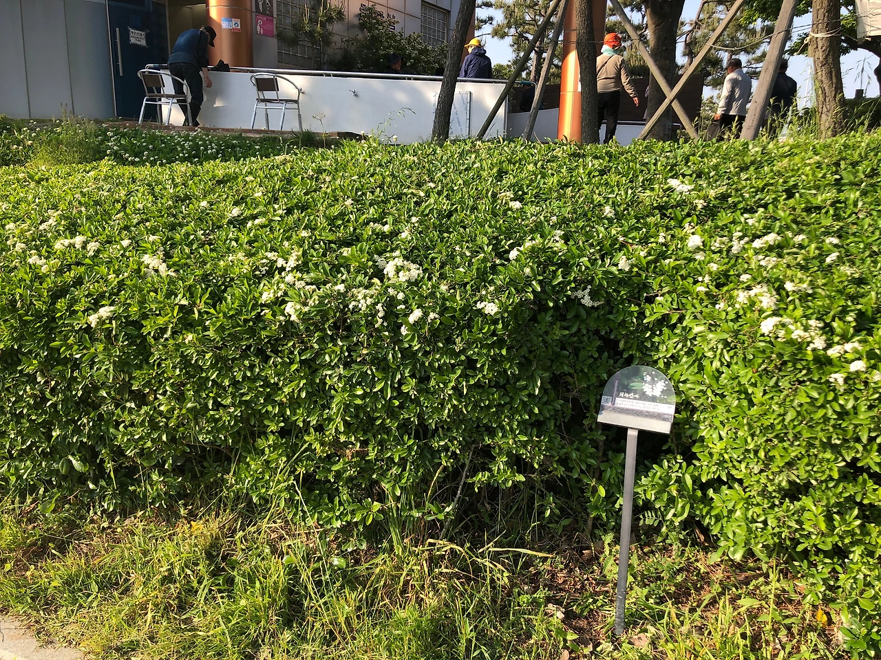 여기서부터는 남파랑길 4구간에서 가장 매력적인 길인, 다대포해변공원의 해솔길이 이어진다. 강가의 수목들 아름답고 여유로운 길이다. 여기서 특이하게도 내륙에서는 잘 보지 못하던 수목의 풍경을 만나게 된다. 피라칸사, 돈나무 그리고 꽃댕강나무가 잘 조성이 된 화단을 보면서 걷는 길에서 신기함을 느꼈다. 내륙에서는 대부분 이런 모습을 사철나무 같은 것으로 조성을 하는데, 이후에 남해안에서는 자주 이 세 가지로 꾸며진 화단을 자주 보게 되었다. 어디선가 풍겨오는 해당화의 향기도 코를 자극한다.