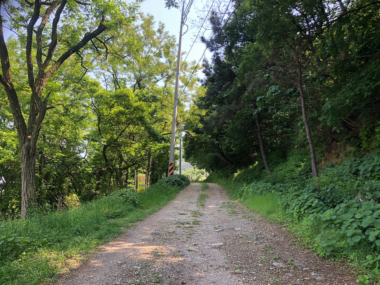 내려오는 길도 완만하다. 길이 편해서 좀 빠른 속도록 내려오지만 길이 단조로운 탓인지 내려오는 길이 길게 느껴진다. 이제 거의 다 왔다고 생각되는 순간에 사유지를 통과하던 기존의 경로가 변경이 되어서 먼 길로 우회를 하도록 안내가 되어 있다. 길이 조금 더 지겨워지는 순간...