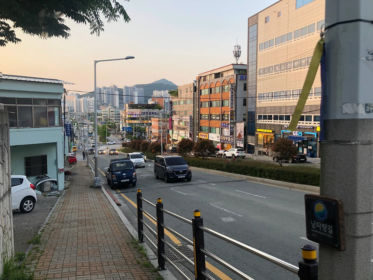 선셋전망대에서 신평동 교차로까지는 대로의 좌우를 걷는 길이어서 단조로운 편이다. 하지만 낮시간엔 도로에서 조금 더 멀어진 산책로를 이용하는 대안이 있고, 바닷가를 조망하면서 걸을 수 있으니 그 단조로움을 조금은 없앨 수 있을 것 같다.