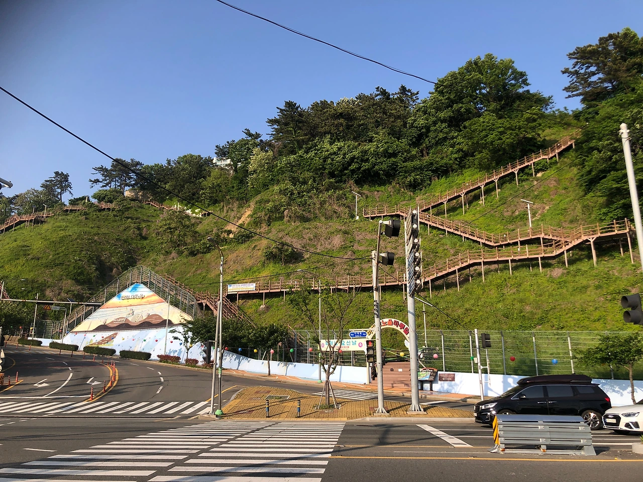갈대밭을 통과해 다대포해변공원의 끝에 이르면 대로가 나오는데 이 대로를 잠시 걷다 보면 길 건너에 아미산 전망대로 오르는 계단이 보인다. (17:20, 13.5km)