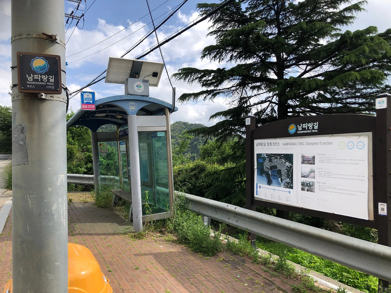 잠시 앉아서 발을 쉬어주면서 시점으로 회귀하는 버스를 기다린다. 시점인 송정공원 근처까지 바로 가는 버스가 있어서 버스를 기다리는 시간까지 포함해서 1시간 정도를 걸려서 회귀를 했다. 이 정도면 비교적 편한 회귀 코스인 셈이다.