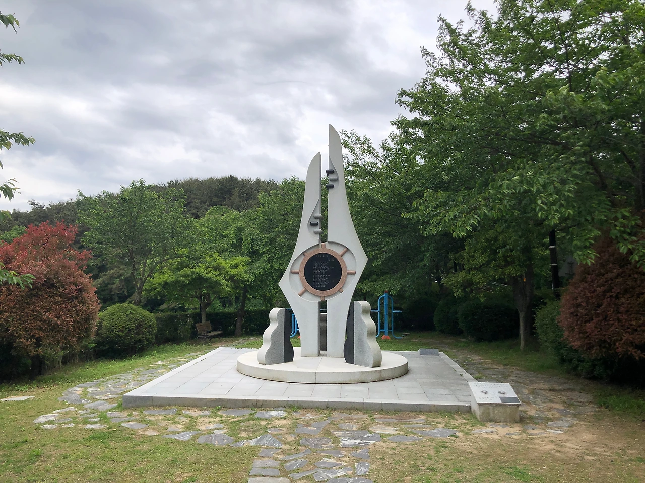 조용한 산길도로를 따라 계속 걷다 보면 넓은 도로로 이어지는데 여기가 명동의 입구이다. 멀리 바다 쪽으로 전망대 같은 것이 우뚝 솟아 있는데 그곳이 진해해양공원이다. 또 길은 이곳도 안 들르고 그냥 도로를 따라 이어진다. 그래서 멀리에서 진해해양공원이 있는 음지도를 보면서 지나친다. 왜 그냥 지나치도록 경로를 만들어 놓았을까? 음지도는 멀지 않아서 한 바퀴 돌아서 나오면 그나마 이 구간을 걷는 보람을 느끼게 하는 요소가 되지 않을까 싶은데 말이다. (13:20, 2.7km)