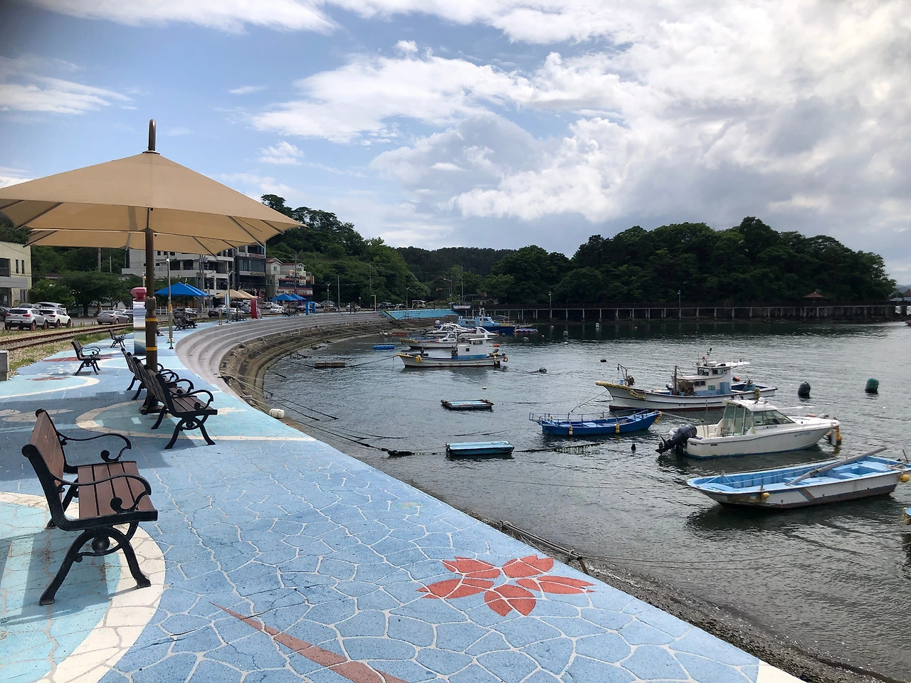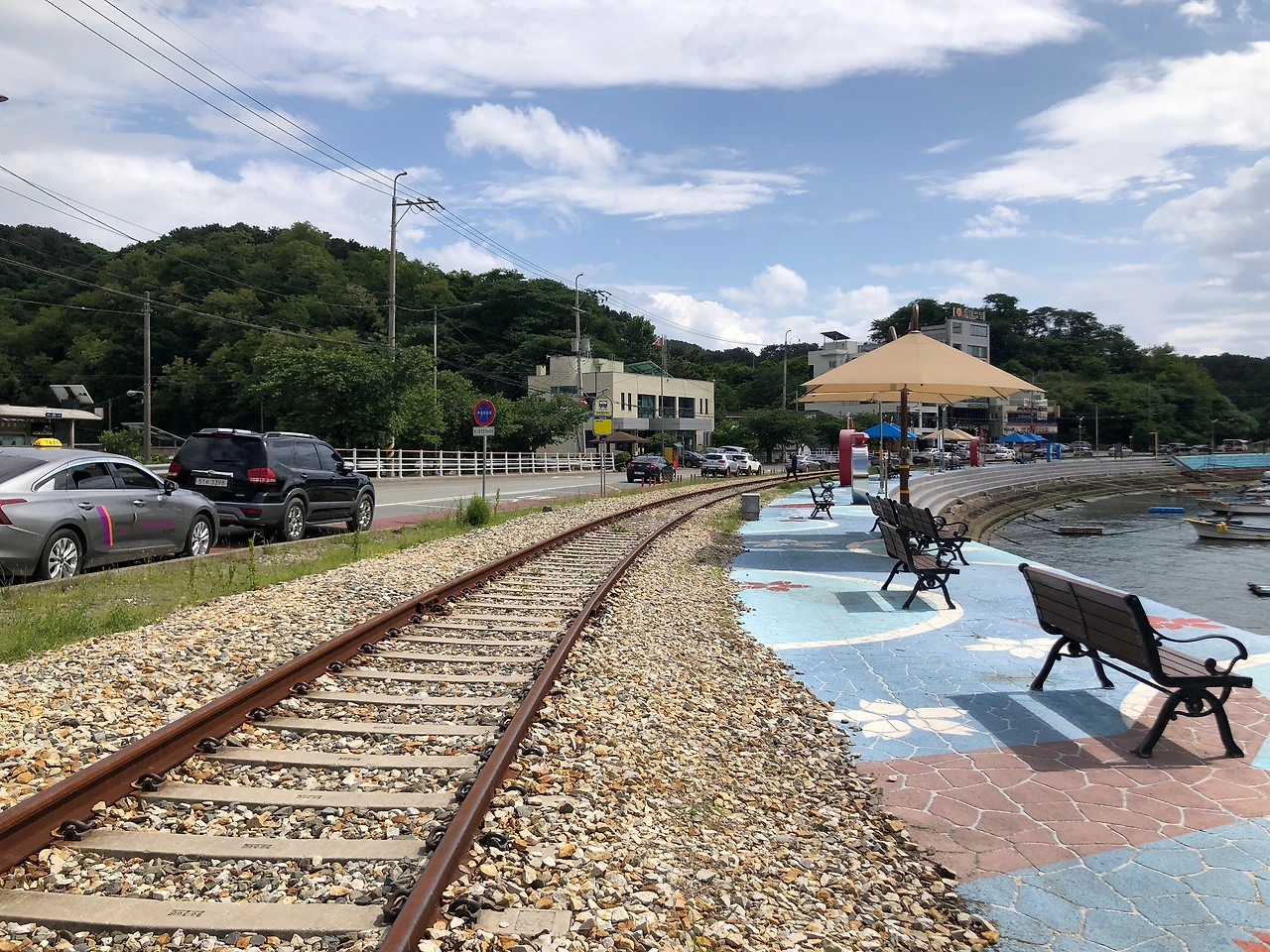 행암동 해변은 작지만 아기자기한 횟집들과 카페가 있고, 바다 쪽의 경관이 괜찮다. 앞쪽에 철로가 가까이 있어서 재미있는 풍경을 만들고 있다.