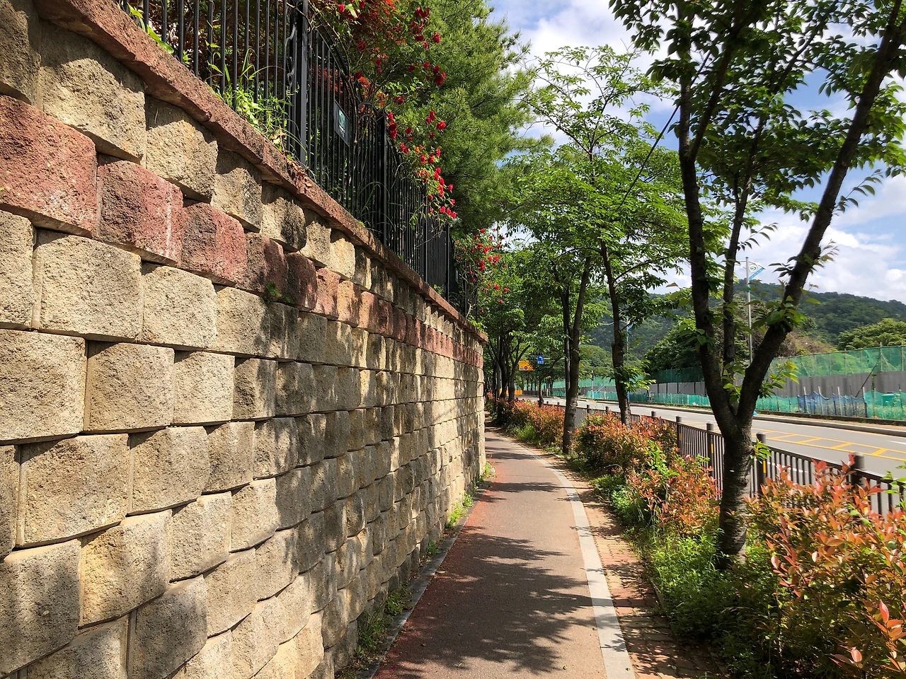 땀을 식히고 점심을 먹고 나오다가 원두커피머신이 있길래 평소에는 잘 먹지 않는 식당 커피를 한 잔 챙겨서 나와서 잠깐을 더 쉬었다. 바깥에는 별로 앉아서 쉴만한 곳이 없어서 그냥 화단 귀퉁이에 앉아서 커피를 홀짝홀짝 마시면서 쉬는데, 와~ 커피는 정말 맛이 없었다. 대충 먹다 버리고 내가 챙겨간 더치커피를 조금 더 마셨다. 두 커피 간에 엄청난 맛의 차이를 느끼면서, 괜히 자판기 커피를 선택해서 점심 잘 먹고 입맛만 버렸다 싶은 생각을 하면서 다시 오후의 걷기를 시작했다.