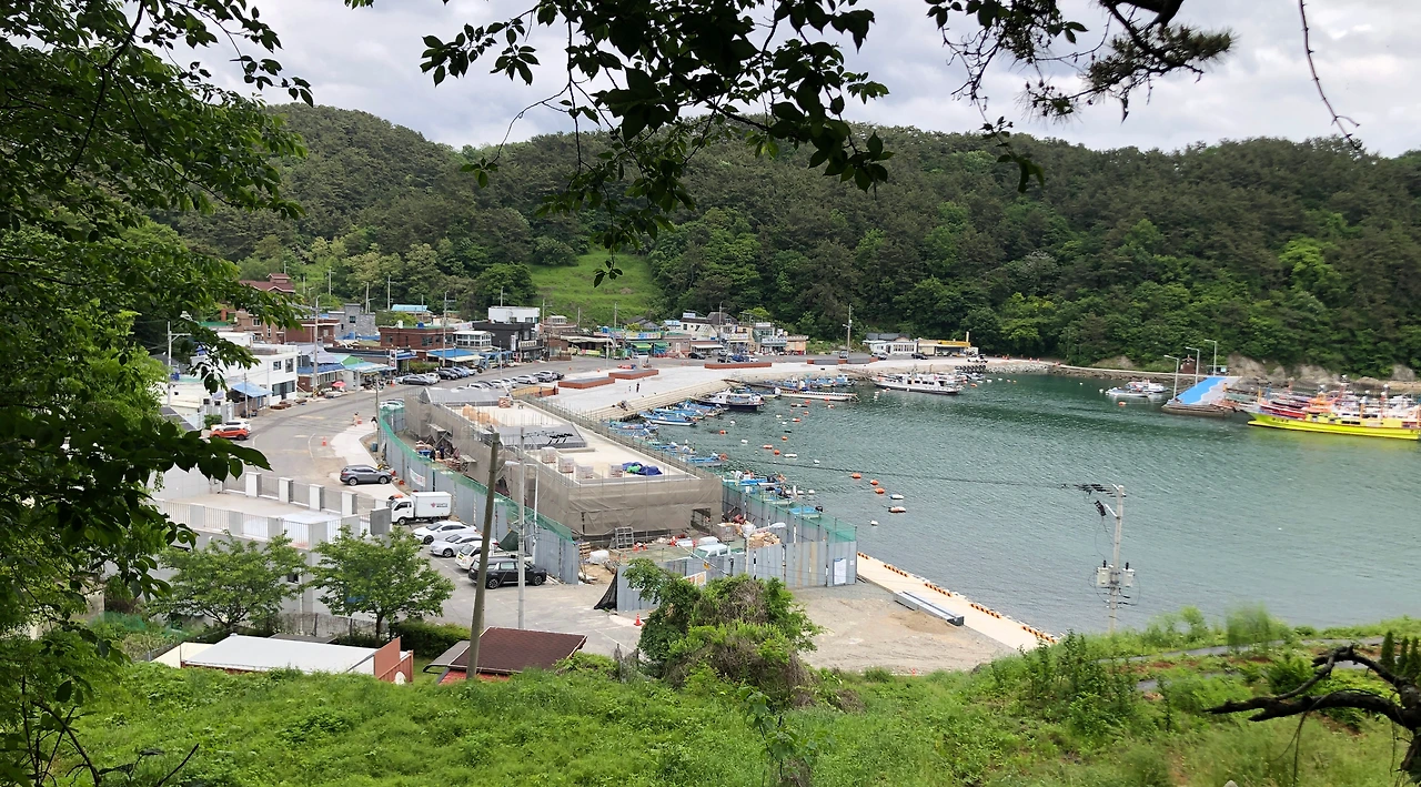 바로 앞에 아파트 공사장이 있어서 서둘러 통과하니 자그마한 제덕항의 전경이 한눈에 들어온다. (12:50, 0.6km)