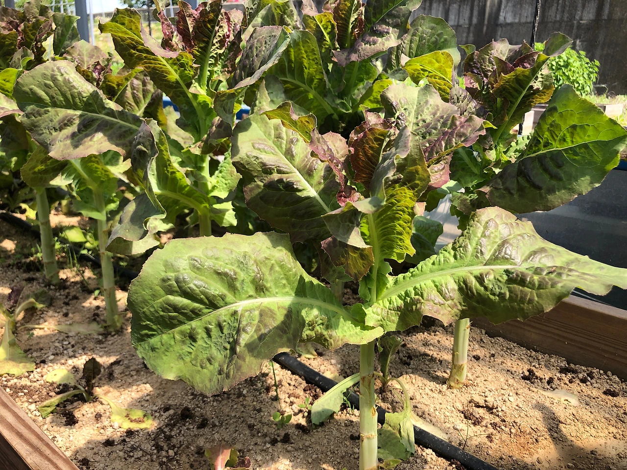 그 사실에 근거해서 아랫잎들을 과감하게 따버리고 아랫부분을 시원하게 만들어 놓으니 그제야 상추 이파리들이 깨끗해진다. 그 이후론 적당히 자란 이파리들은 바로바로 수확을 해버린다. 그러면 함께 따라오는 이점 하나는 나머지 이파리들이 빠른 속도로, 건강하게 성장한다는 것이다. 게다가 또 하나 기대를 해볼 수 있는 것은 꽃대가 빨리 올라오는 것을 막을 수 있다는 것이다. 성장에 주력하면 생식에는 아무래도 둔해진다. 겨울을 난 상추들의 키가 끝이 없이 자라면서도 아직 꽃대가 나오지 않는 것을 보고 느낀 점이다. 반대로 수확을 하지 않고 방치하면 바로 꽃대가 올라와버린다는 점에도 착안을 했다.