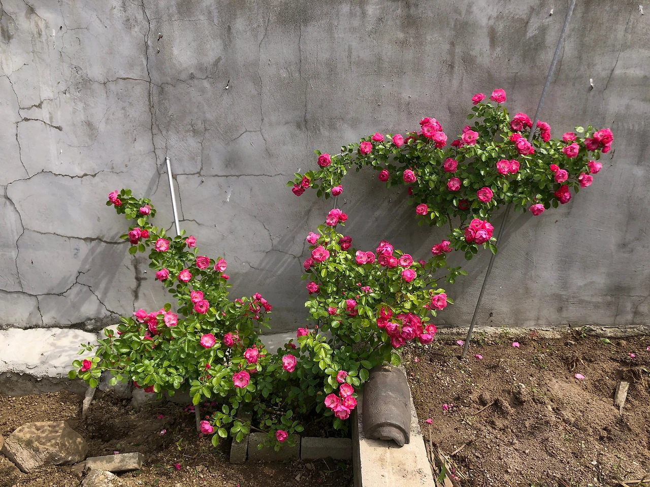 삽목을 해서 자란 분홍색 장미