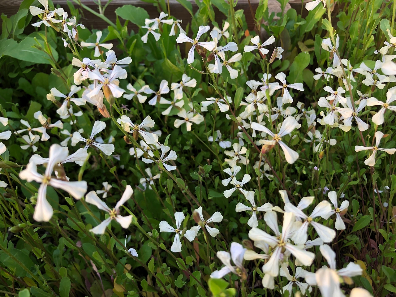 너무 밀식을 해서 제대로 자라지 못하고, 그래서 제대로 수확도 못하고 맛만 본 루꼴라는 벌써 꽃대가 올라와서 꽃밭을 만들어 버렸다. 아쉽다... 다음번엔 모종판에 파종해서 제대로 길러봐야겠다는 결심만 하게 만든다.