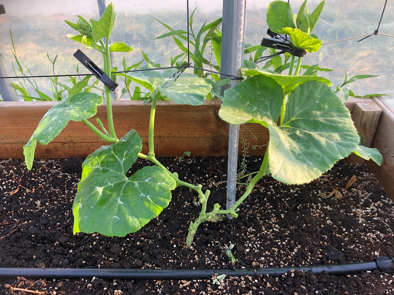 호박 중에서는 가장 먼저 자리를 잡은 애호박만 겨우 순치기를 해서 아들줄기 두 개씩 올리고 있을 뿐이다. 맷돌호박, 단호박, 참외, 애플수박, 망고수박은 아직도 여전히 어린 상태로 그대로 있다. 왜 이리 성장이 더딜까...