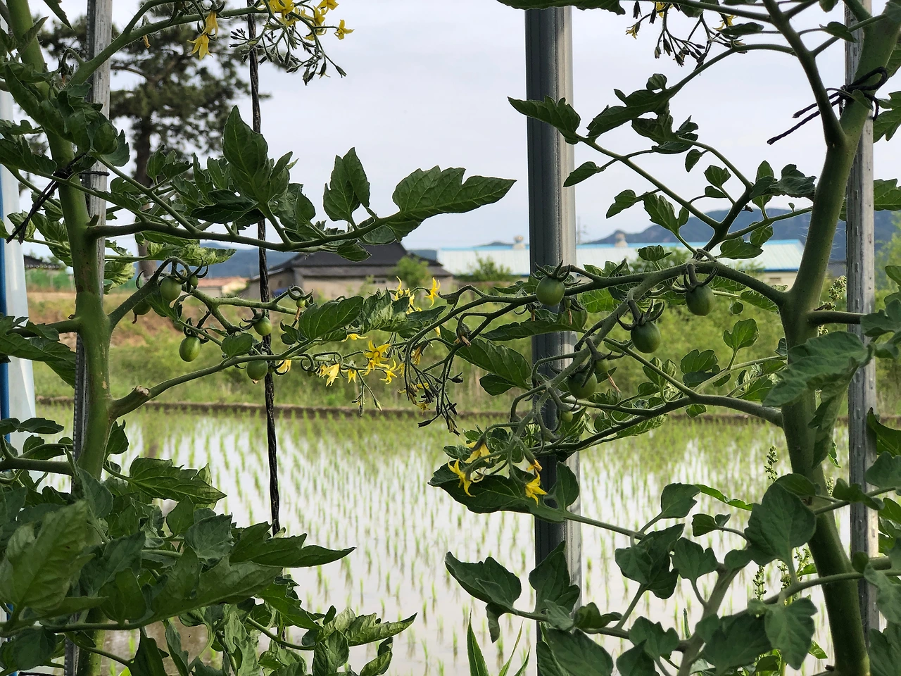 토마토는 아랫잎이 7장이 달린 후에 첫 화방, 그러니까 꽃이 맺히고 그것이 열매가 되는 가지가 나오게 되고, 그 이후부터는 3장 간격으로 화방이 달린다네. 밭에 있는 방울토마토 이파리들을 세어 보았다. 화방은 내가 제거한 이파리 이후에 이파리가 7~8장이 나온 후에 달리기 시작했다. 왠지 화방이 올해는 좀 높게 달린다 싶었다. 유 선생의 이론대로라면 섣부르게 이파리를 일찍 제거한 탓일지도 모르겠다. 전체(라고 해봐야 10그루이지만)를 확인해 보니 거의 그런 것 같았다. 게다가 토마토의 키가 중간쯤에서 성장이 느려지는 느낌이다. 더 자랄지는 아직 더 기다려 봐야겠지만 왠지 그런 것 같다.