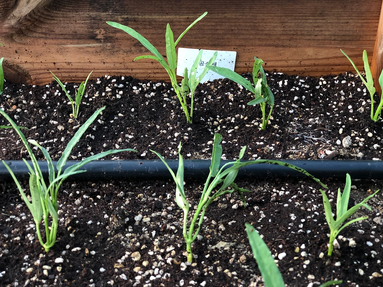 무는 파종 시기가 조금 늦었지만(어차피 다른 것도 파종 시기는 맞지 않다.), 그래도 한번 뿌려 보았다. 김장철까지 제대로 자라지는 않겠지만 그냥 자란 만큼만 수확을 하면 될 것이다. 무는 싹이 참 잘 난다. 심은 지 사흘 만에 벌써 싹이 보이기 시작한다.