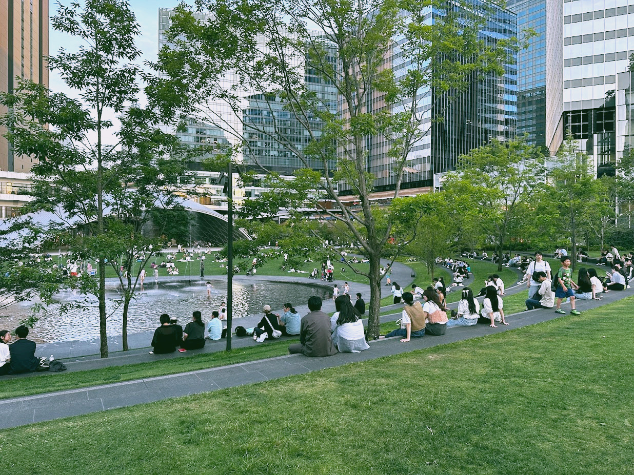 우메키타 공원은 단순히 나무를 심는 전통적인 조경과 다르다. 미국 시애틀의 조경회사 GGN(Gustafson Guthrie Nichol)은 이곳을 '도시의 새로운 폐(lung)'로 정의했다. 도시는 늘 빠르게 움직인다. 자동차, 전철, 사람, 광고, 빛. 그 속도와 소음에 지친 사람들에게 필요한 것은 '공기'였다. 숨 막히는 일상에 여유의 리듬을 불어넣는 것이 핵심이었다.