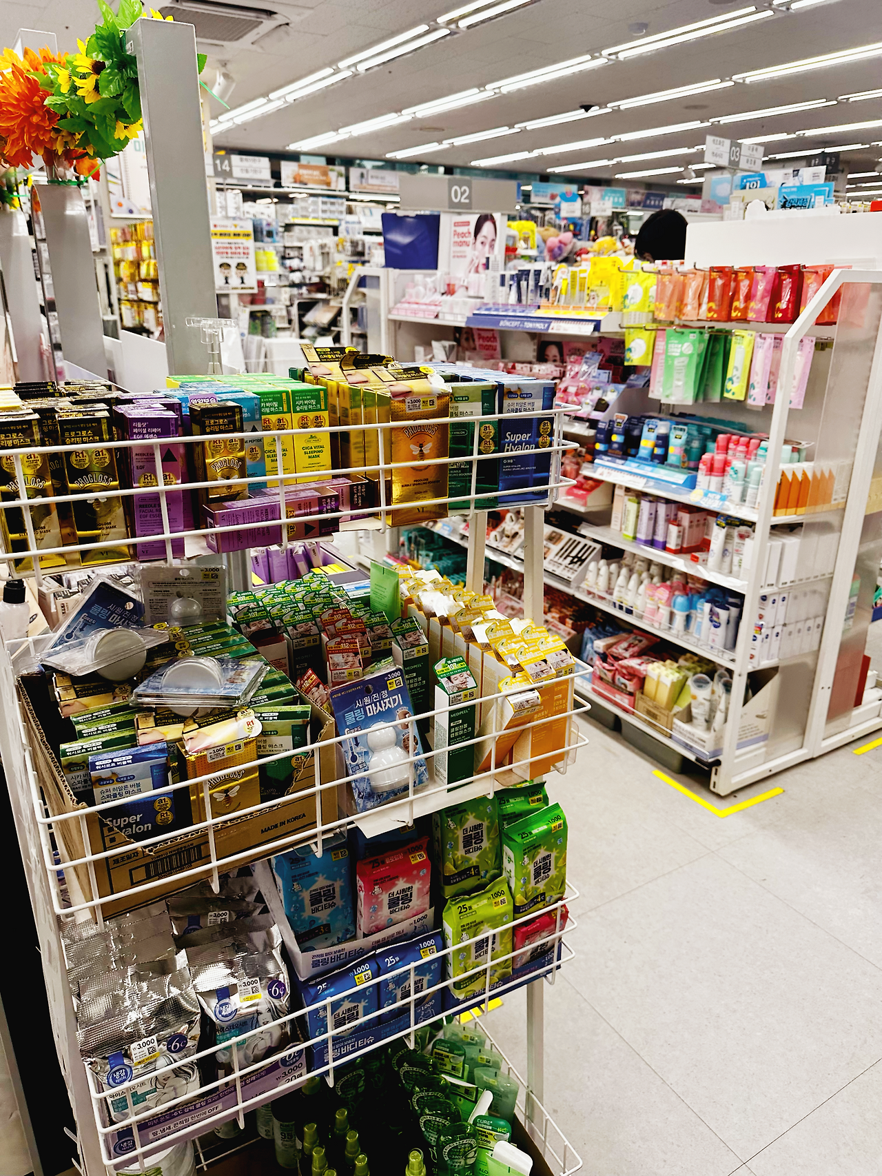 문을 여는 순간 느껴지는 건 압도적인 밀도. 천장까지 물건으로 가득 찬 좁은 통로. 백화점이 만들어주는 사회적 거리 대신, 다이소는 인류학자 에드워드 홀이 정의한 개인적 거리로 바로 파고든다.