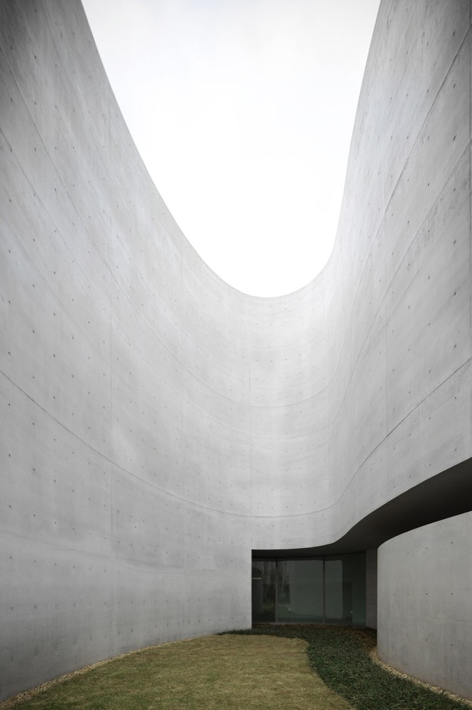 굽이치는 벽을 따라 걷는 발바닥의 감각, 천장의 개구부에서 쏟아지는 빛이 피부에 닿는 촉감. 여기서 공간은 이해의 대상이 아니라, 지각의 과정 그 자체가 된다.