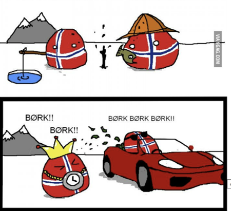 세계 1인당 GDP 순위 3위는 노르웨이입니다. 인구수 551만 명, 1인당 GDP 9만 3천 달러, 총 GDP 30위로 아일랜드와 매우 비슷합니다. 노르웨이는 연어를 중심으로 한 수산업, 나무가 많아 원목 수출, 주변에 바다밖에 없으니 조선업 등으로 1960년대까지 영국, 프랑스 수준으로 살다가 1969년 북해에서 유전이 터져 부자가 되었습니다.