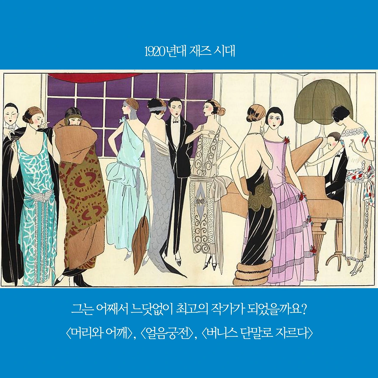 코디정: (웃음) <머리와 어깨>는 문장가로서 피츠제럴드 자신이 얼마나 탐미적인 문장을 사용할 수 있는 재능이 있는지를 보여줄 뿐만 아니라, 지적으로도 얼마나 성숙한 사람인지를 단적으로 증명하는 소설이라고 생각해요.