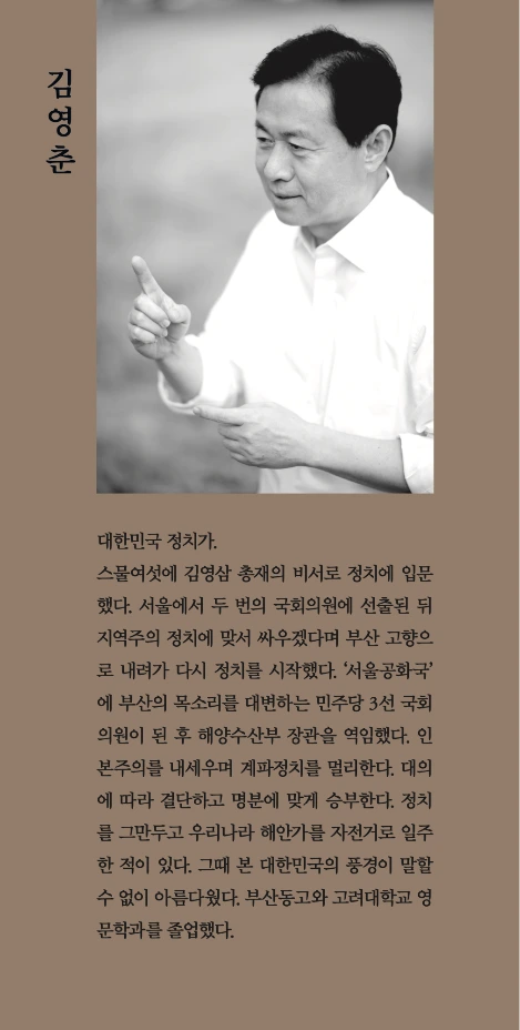 결국 정치인이었어요. 좀 여러 시대를 경험한 거물 정치인, 이었으면 좋겠네. 그리고 결론이 바로 '김영춘'이었습니다.