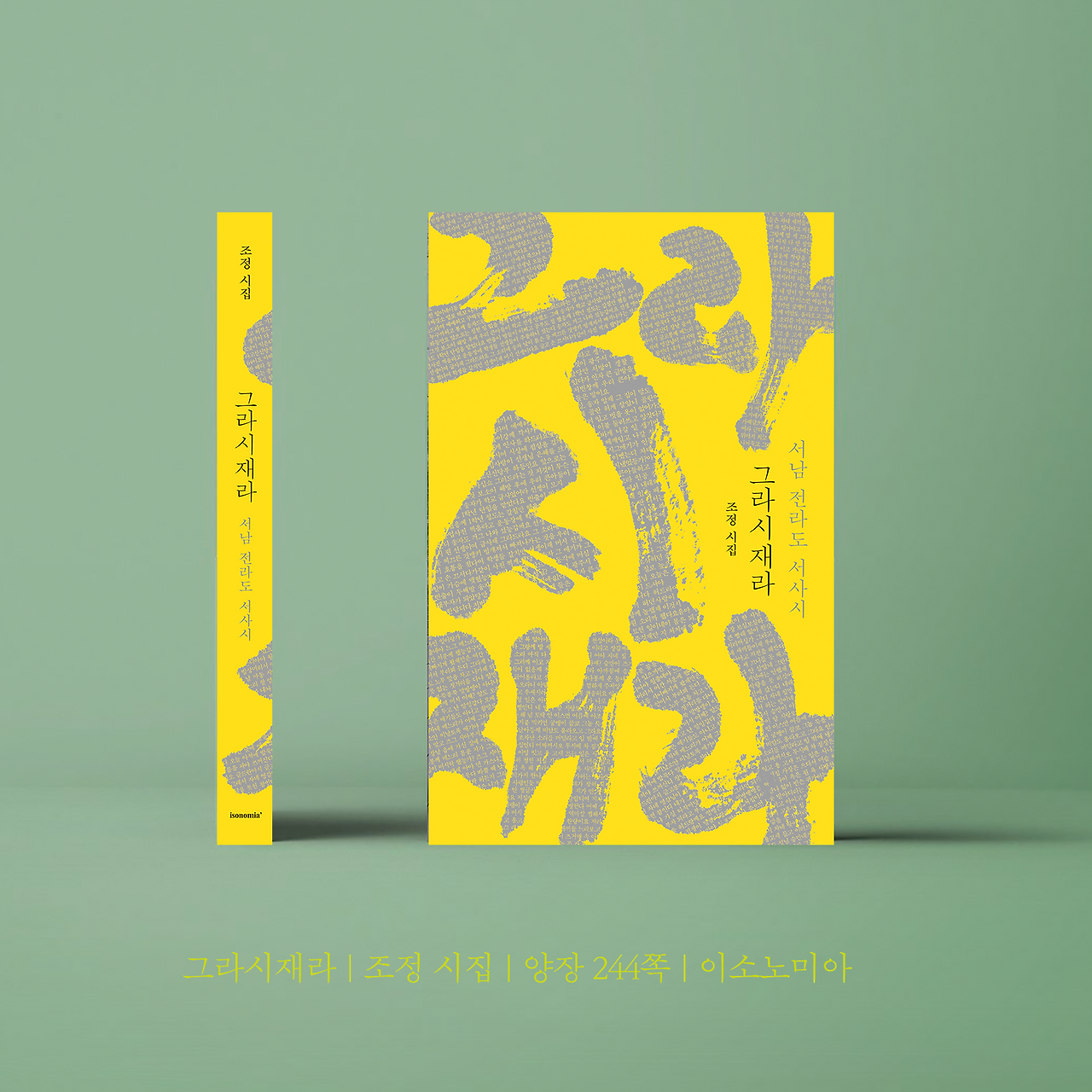 모든 시편이 서남 전라도 방언으로 씌었습니다. 서남 지역에 살면서 그 지역 언어를 썼던 여성들의 목소리가 환청처럼 들립니다. 동란을 겪으며 자식을, 형제를, 부모를 잃은 여성들이 어떻게 삶을 움켜쥐고 서로 의지하면서 다음 세대를 함께 키워냈는지 시집은 서사시로 보여줍니다. 누군가 한국 문화의 특성을 한(恨)의 문화라고 규정한다면, 그것은 다름 아닌 ‘여성의 한’일 겁니다. 누군가 이 나라에서 페미니즘을 말한다면 시대를 살아간 한국 여성의 존재를 봐야 한다고 생각합니다. 조정의 <그라시재라>는 한국 여성의 존재 방식을 지역언어로 보여 줍니다. 이 시집에 대한 정식 소개는 https://brunch.co.kr/@jwsvddk/208에 있습니다. 책은 양장입니다. <그라시재라>는 그러믄요, 그럴밖에요. 미루어 알만 해요, 라는 뜻입니다.