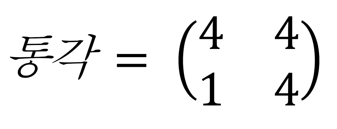 위와 같은 행렬을 기호로 표시해 보자. 의미 모호성을 Wa, 난이도를 Wd, 정합도를 Wc, 오해가능성 Wm로 나타내면, Wp는 다음과 같다.
