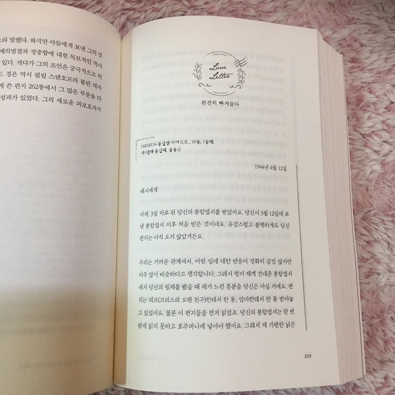 (미와 디자인에 대한 나 자신의 취향을 빼고 말한다면 - 그런 게 과연 가능할지 모르겠지만) 내지 디자인은 상당히 좋습니다. 서체는 4개를 사용했더군요. 편지 느낌이 풍부하게 전해질 수 있는 클래식한 서체를 선택했고, 그러면서도 각주에서는 모던함을 느끼게 하는 서체를 사용했습니다. 너무 과하지 않게 서체를 잡아주고 레이아웃을 정하며 적절하게 장식을 사용했습니다. 재능 있는 디자이너입니다. 그러나 표지 디자인은 안타까운 수준입니다. 누구도 이런 문제를 지적하지 않다니, 결국 편집자에게도 과오가 있겠지요.