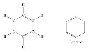아까도 살펴봤지만, 탄소는 육각형을 좋아해요. 탄소 6개와 육각형 구조로 결합된 다음에 각각 1개씩의 수소와 결합할 수 있습니다. C6H6입니다. 이것을 벤젠(Benzene)이라고 부르지요. 왼쪽은 정확하게 표현했고, 오른쪽은 대충 표현했습니다. 벤젠고리라고 부릅니다.