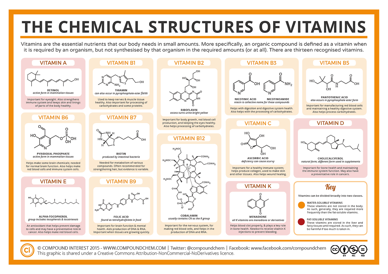 단백질(Protein)의 기본이 되는 유기화합물인 아미노산(Amino acids)은 탄소, 수소, 산소, 질소가 결합한 화합물입니다. 지방(Fat)은 탄소와 수소가 결합한 화합물입니다. 탄수화물(carbonhydrate)은 말 그대로 탄소와 물이 결합된 것 같은 화합물입니다. Cm(H2O)n의 화학식을 갖는 탄소화합물이지요. 우리 몸에 에너지를 제공하는 포도당(glucose)은 C6H12O6의 화학식을 갖습니다. 비타민은 어떨까요? 비타민도 탄소를 기본 골격으로 하는 화합물입니다. 이렇듯 생명을 연구하는 것은 결국 탄소화합물을 연구하는 것이 되는 것이지요.